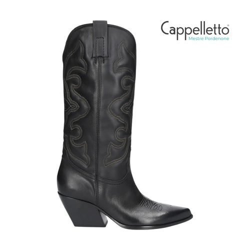Stivale Texano E2000 Ricamato in Pelle Nera