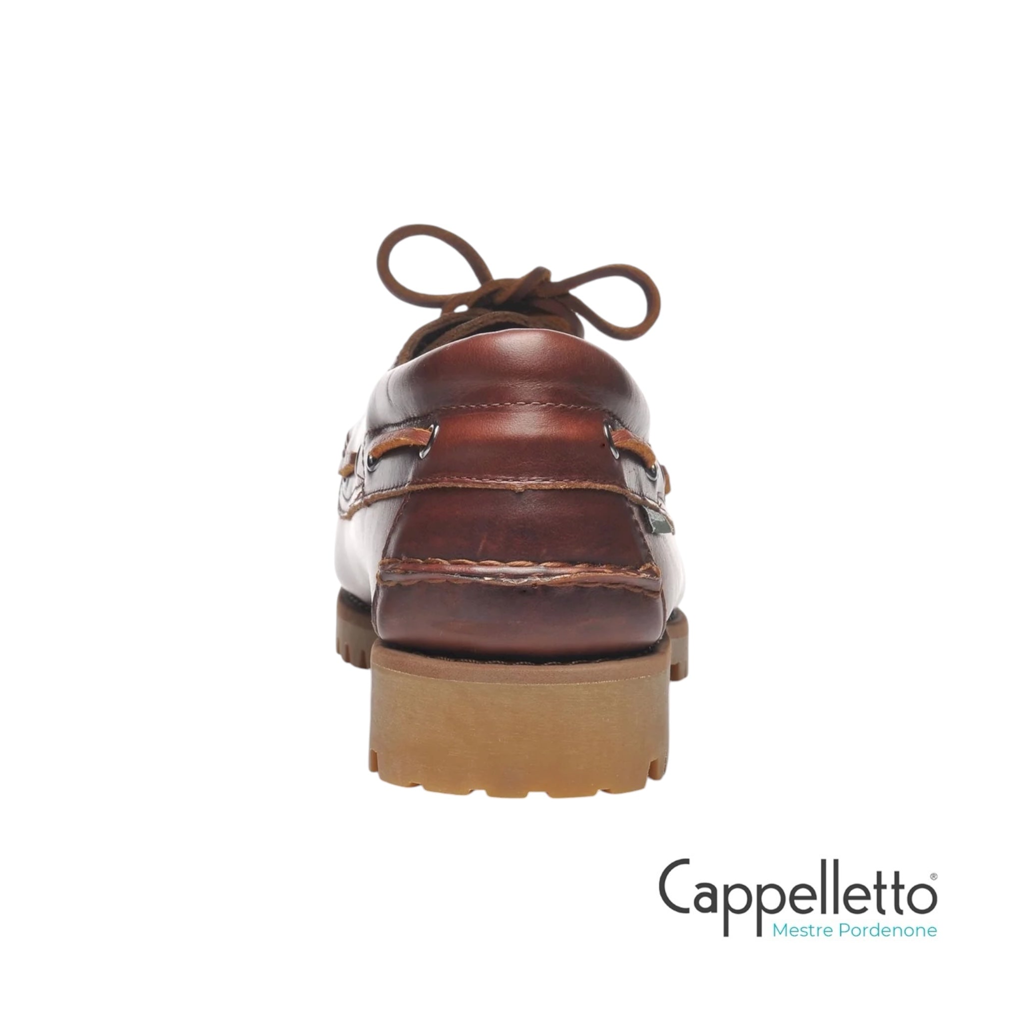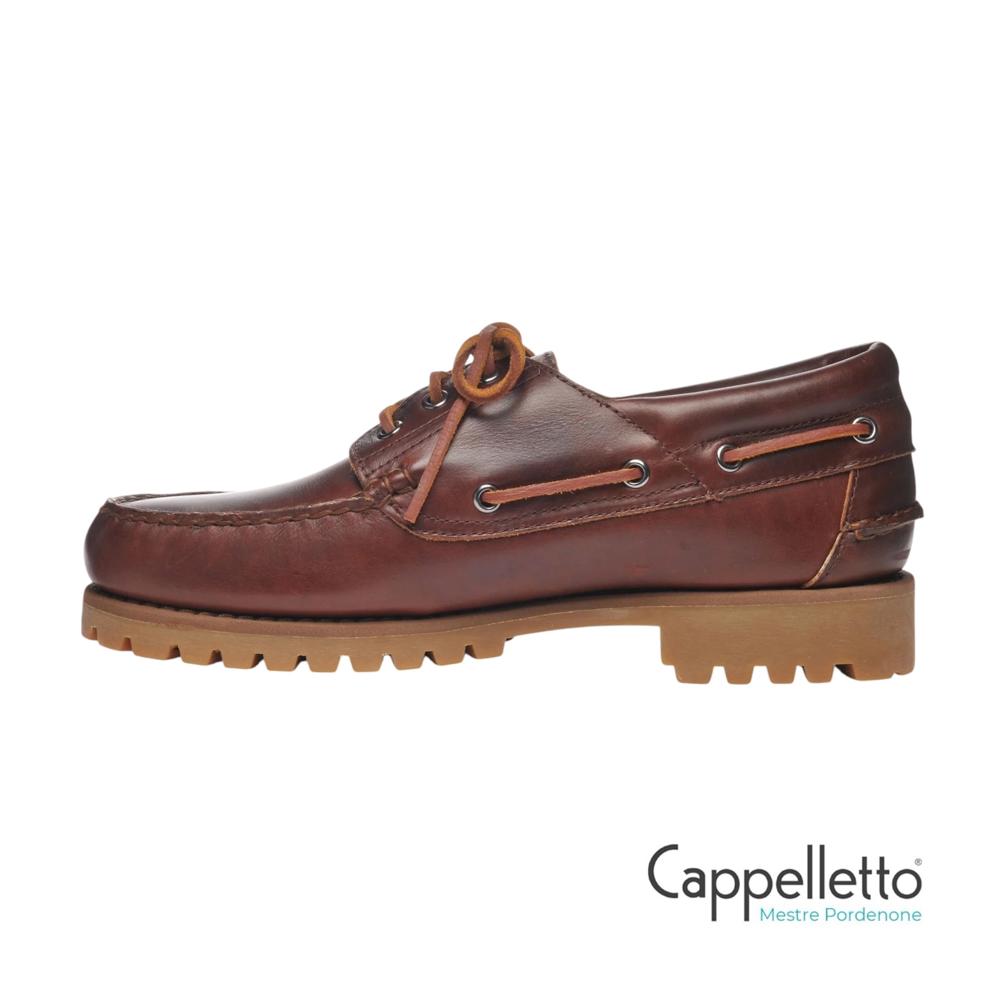 Realizzata in liscia pelle conciata a caldo trattata con una ricca combinazione di olii e cere che conferisce alla tomaia una qualità di lucidatura naturale, questa resistente scarpa cucita mano è un classico che vi porterà ovunque.