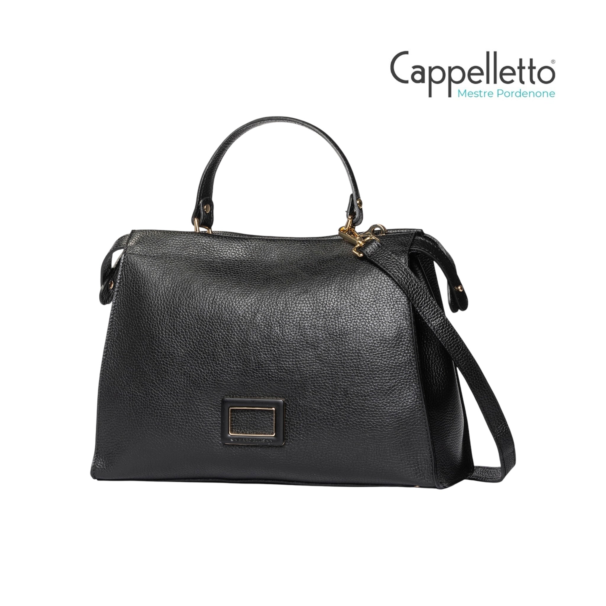 Borsa a mano in pelle martellata firmata Marc Ellis caratterizzata da un design strutturato, indossabile a mano grazie al manico in pelle o crossbody attraverso la tracolla in dotazione.