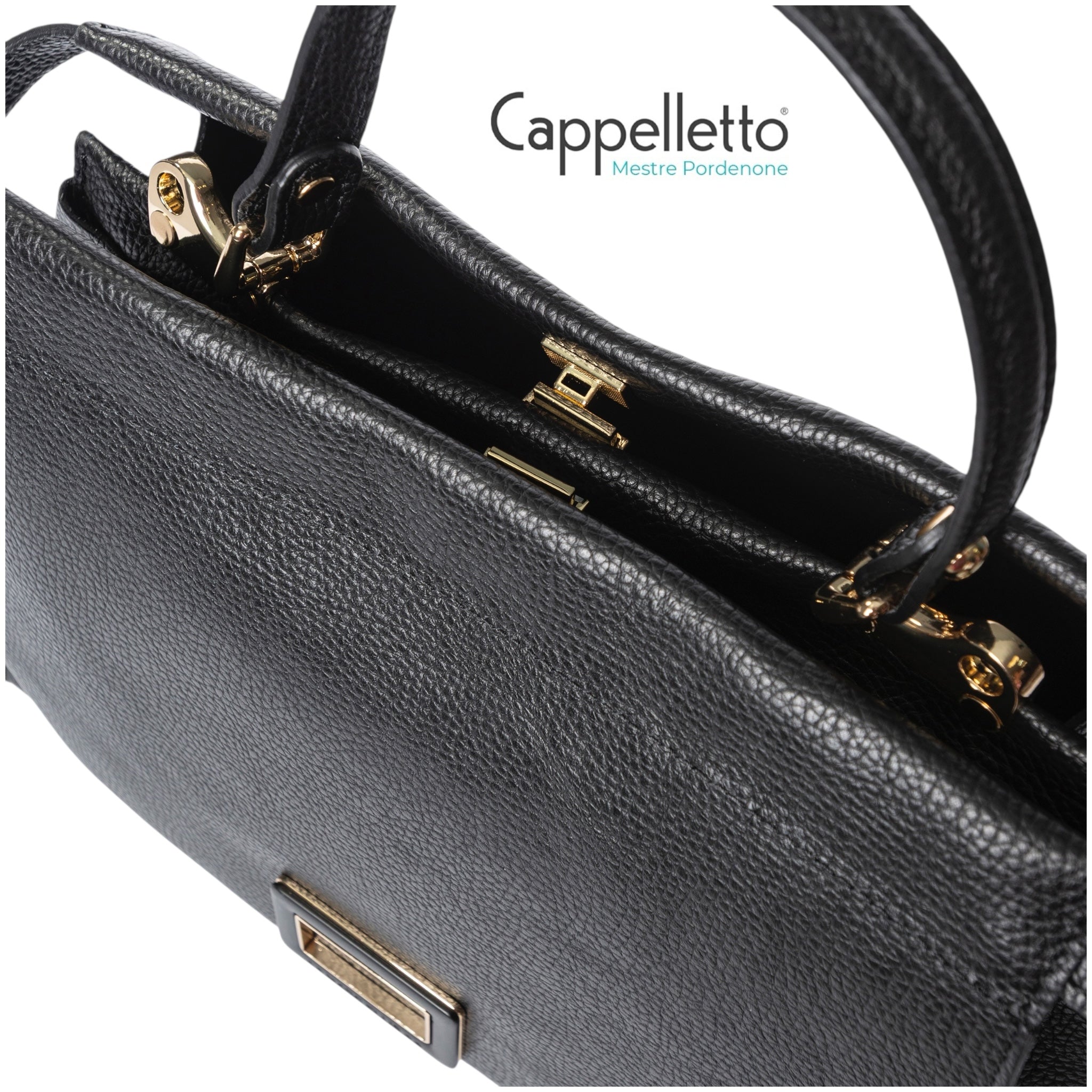Manico in pelle, tracolla in dotazione
