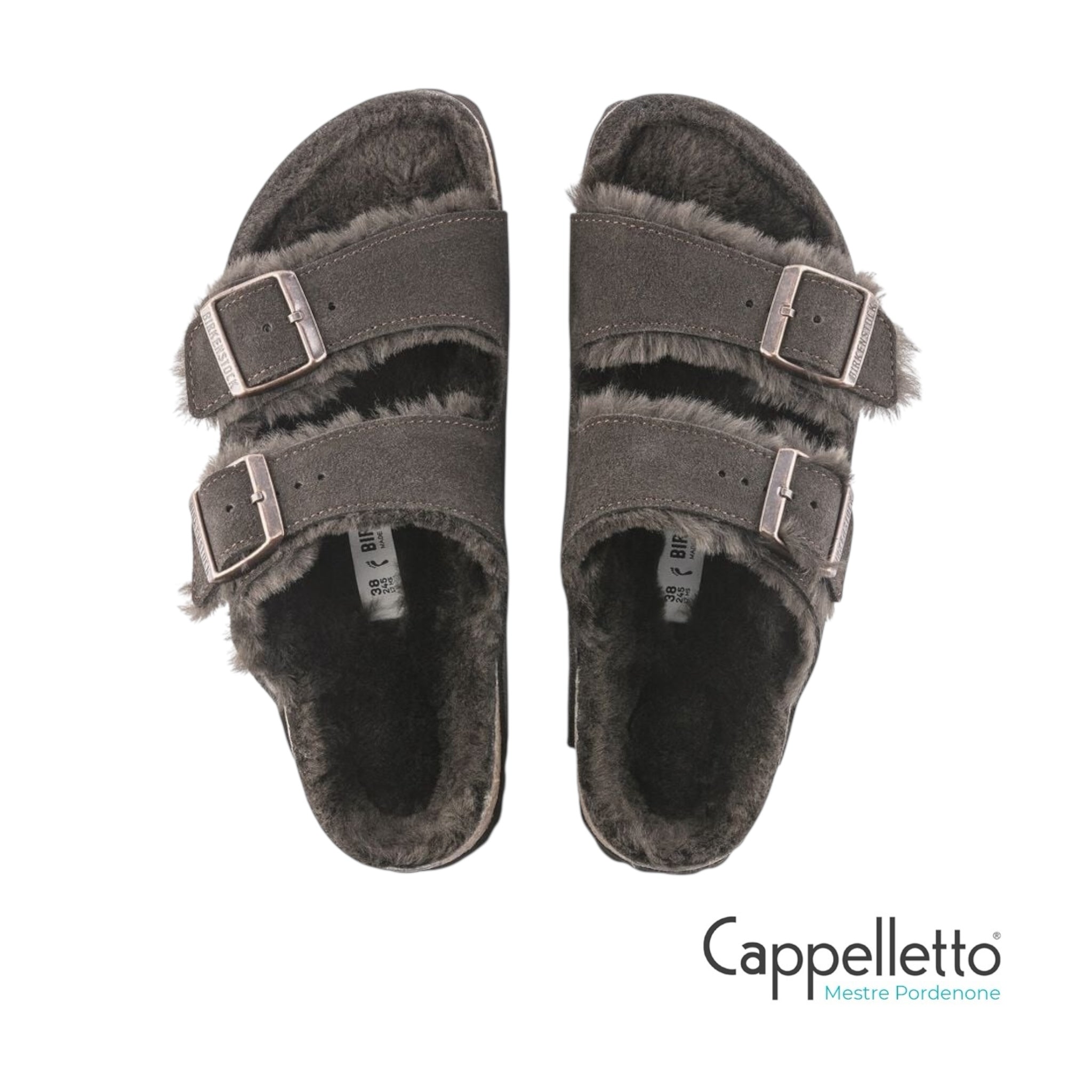 Piedi caldi con stile grazie alla pelliccia naturale di agnello presente nel sottopiede e nel rivestimento interno dei cinturini.