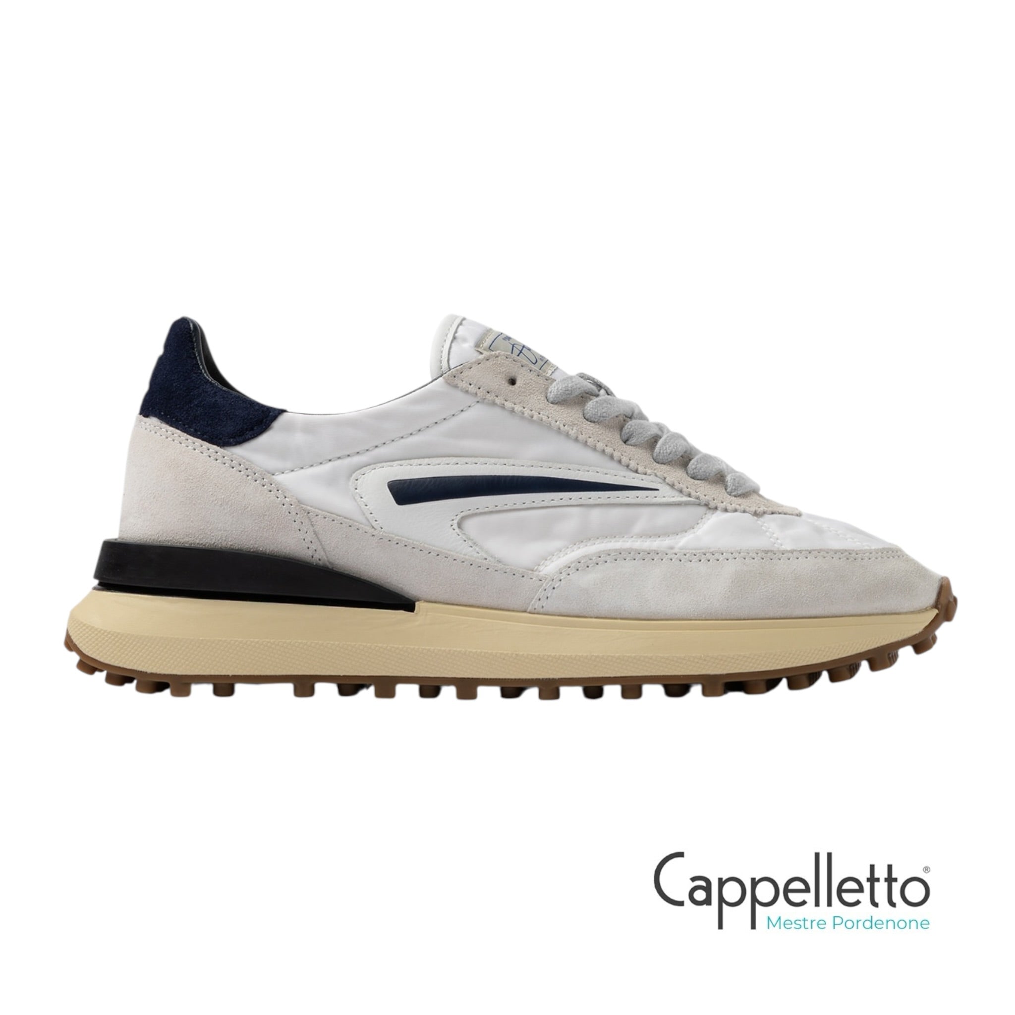 Running sneakers in nylon bianco con dettagli in suede tono su tono.