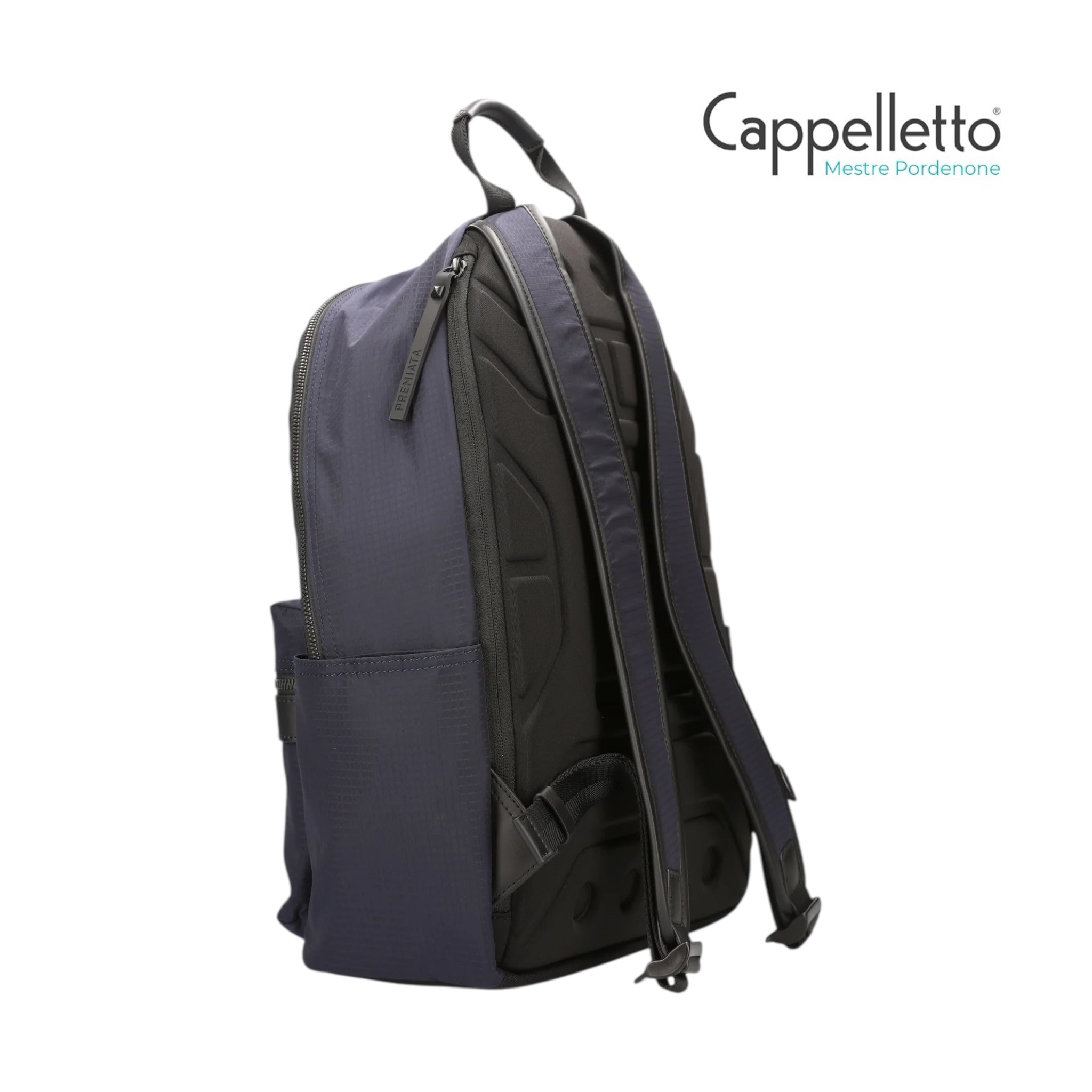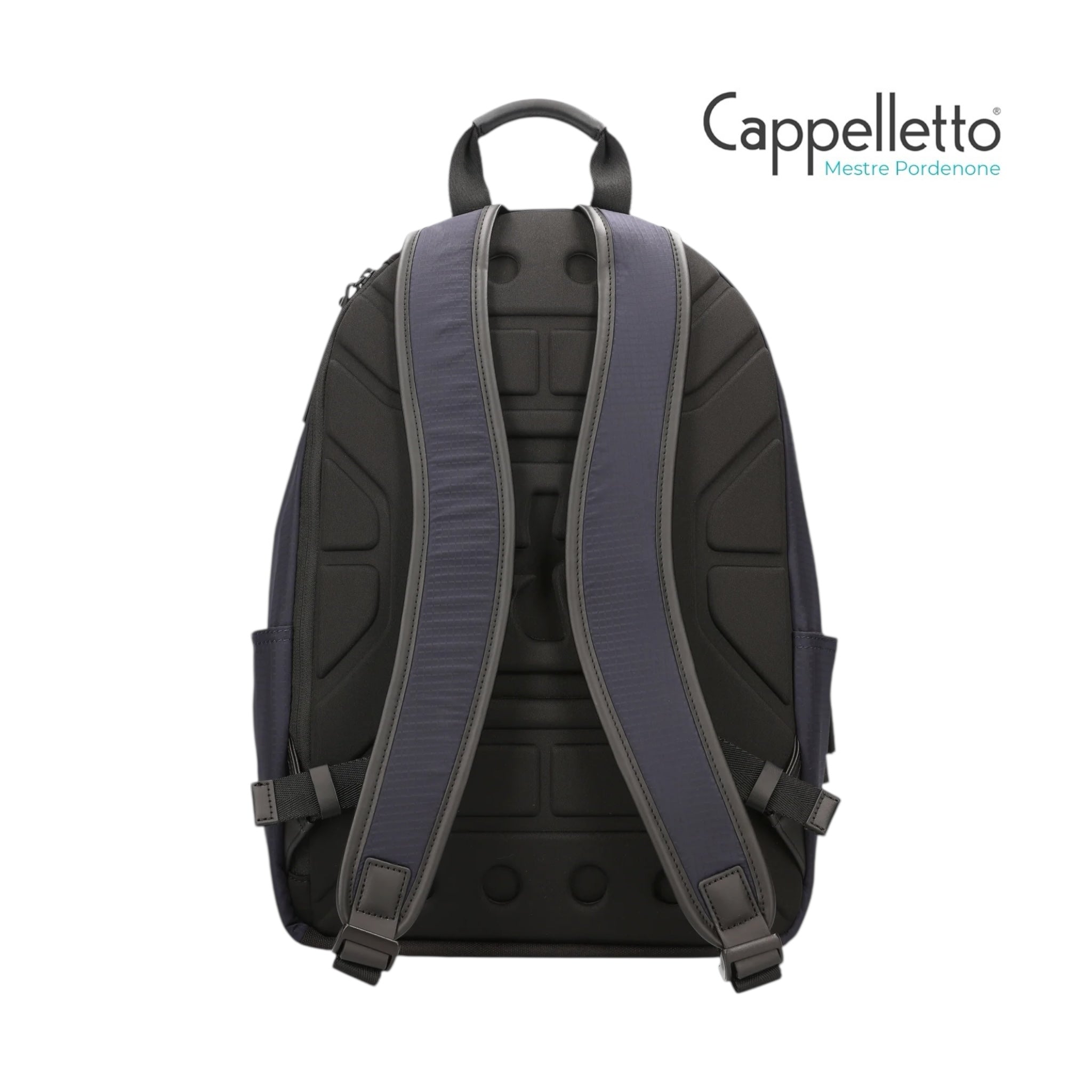 Un modello capiente e versatile in gabardine di nylon di prima qualità con trattamento antisfilacciamento e idrorepellente. Spallacci imbottiti in EVA per un maggiore comfort. Tasche frontali impermeabili con finiture in pelle di vitello e chiusure in metallo opaco.