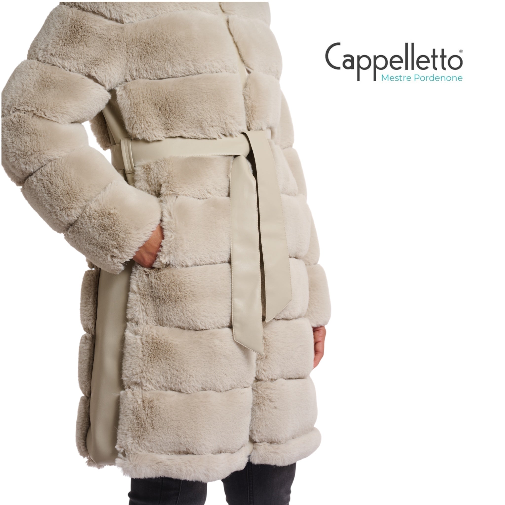 Mettiti comodo e al caldo con questo cappotto in ecopelliccia super morbido con dettagli in ecopelle. Questo cappotto accogliente è dotato di una cerniera a due vie con cintura regolabile e un cappuccio morbido.
