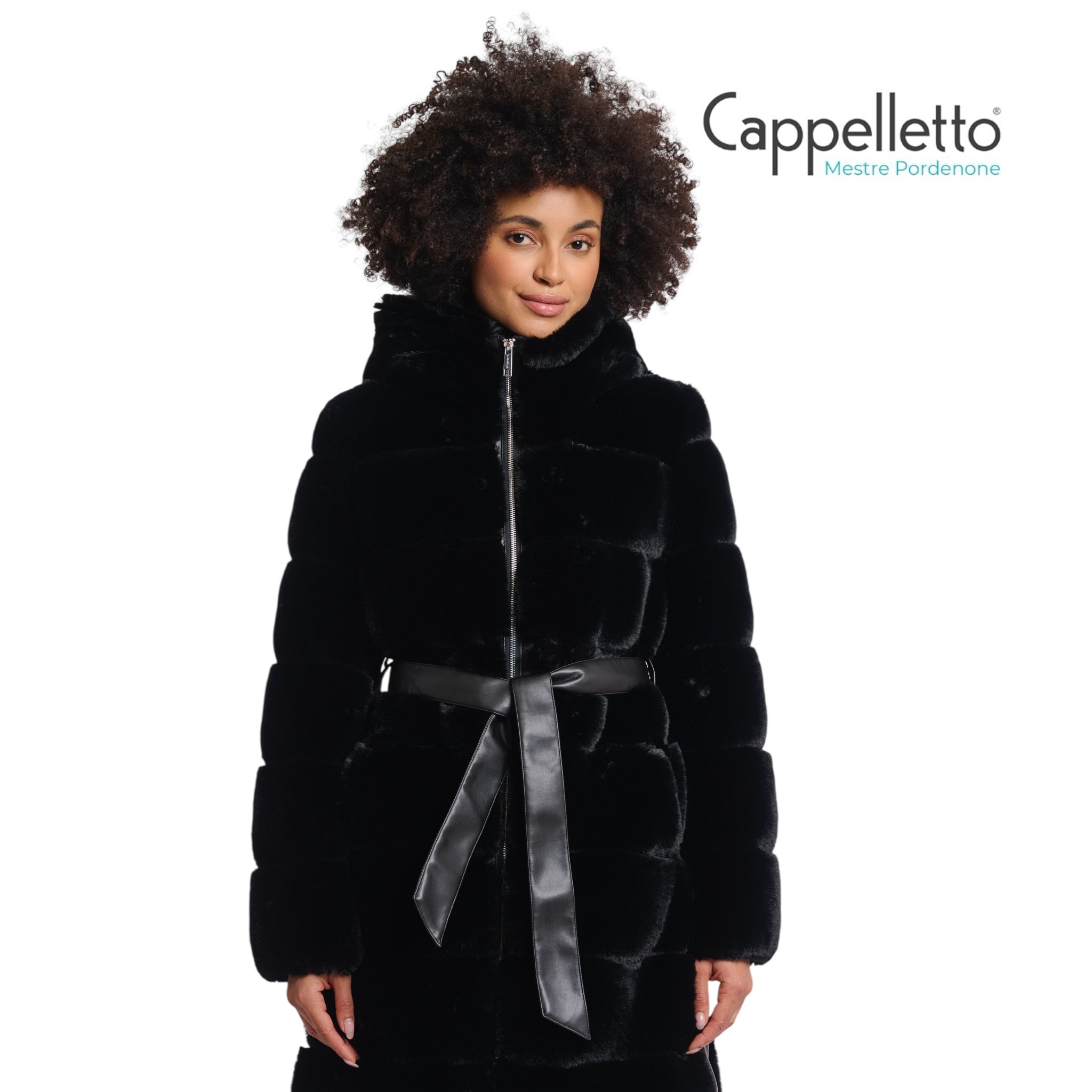 Mettiti comodo e al caldo con questo cappotto in ecopelliccia super morbido con dettagli in ecopelle. Questo cappotto accogliente è dotato di una cerniera a due vie con cintura regolabile e un cappuccio morbido.