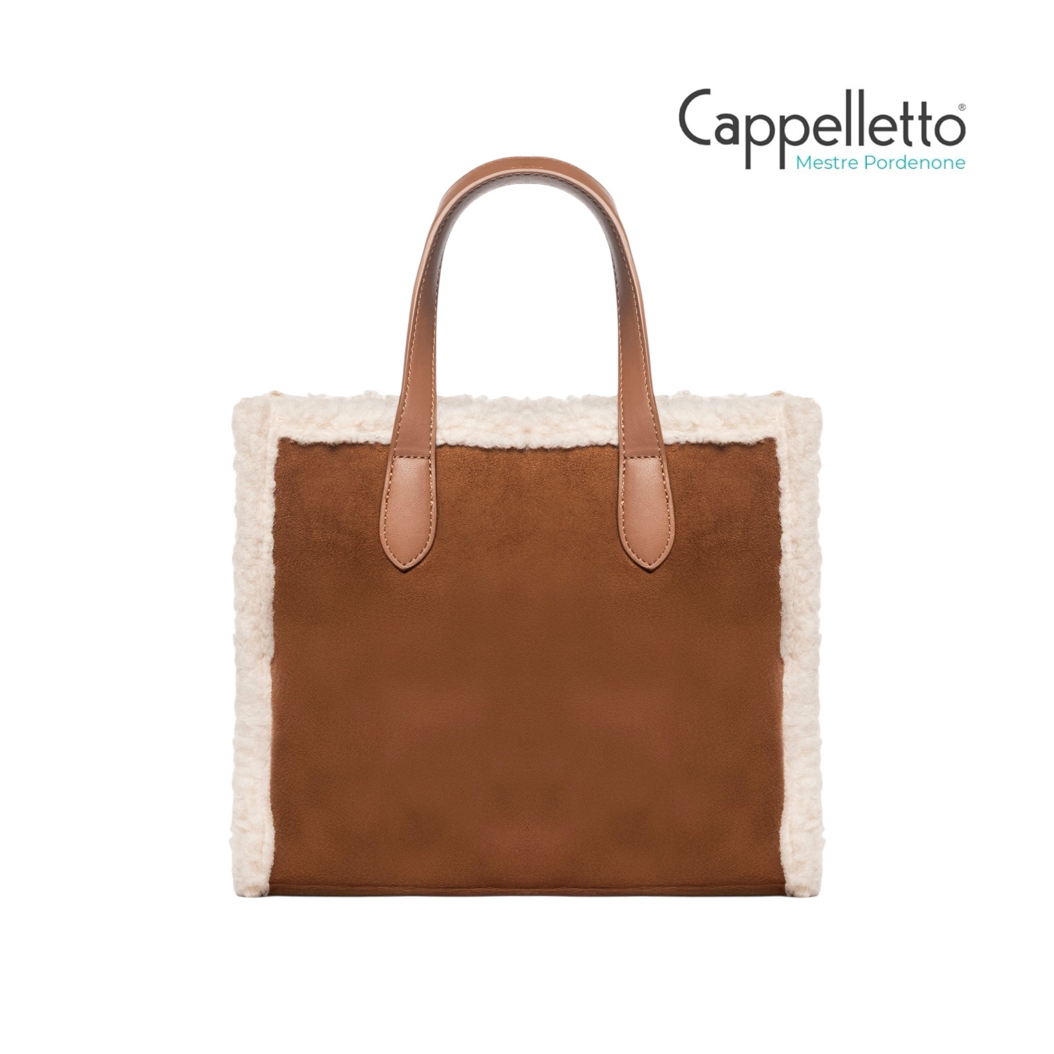 Borsa a mano Buby Suede L in morbido suede da donna con profili in shearling, perfetta per la stagione fredda.