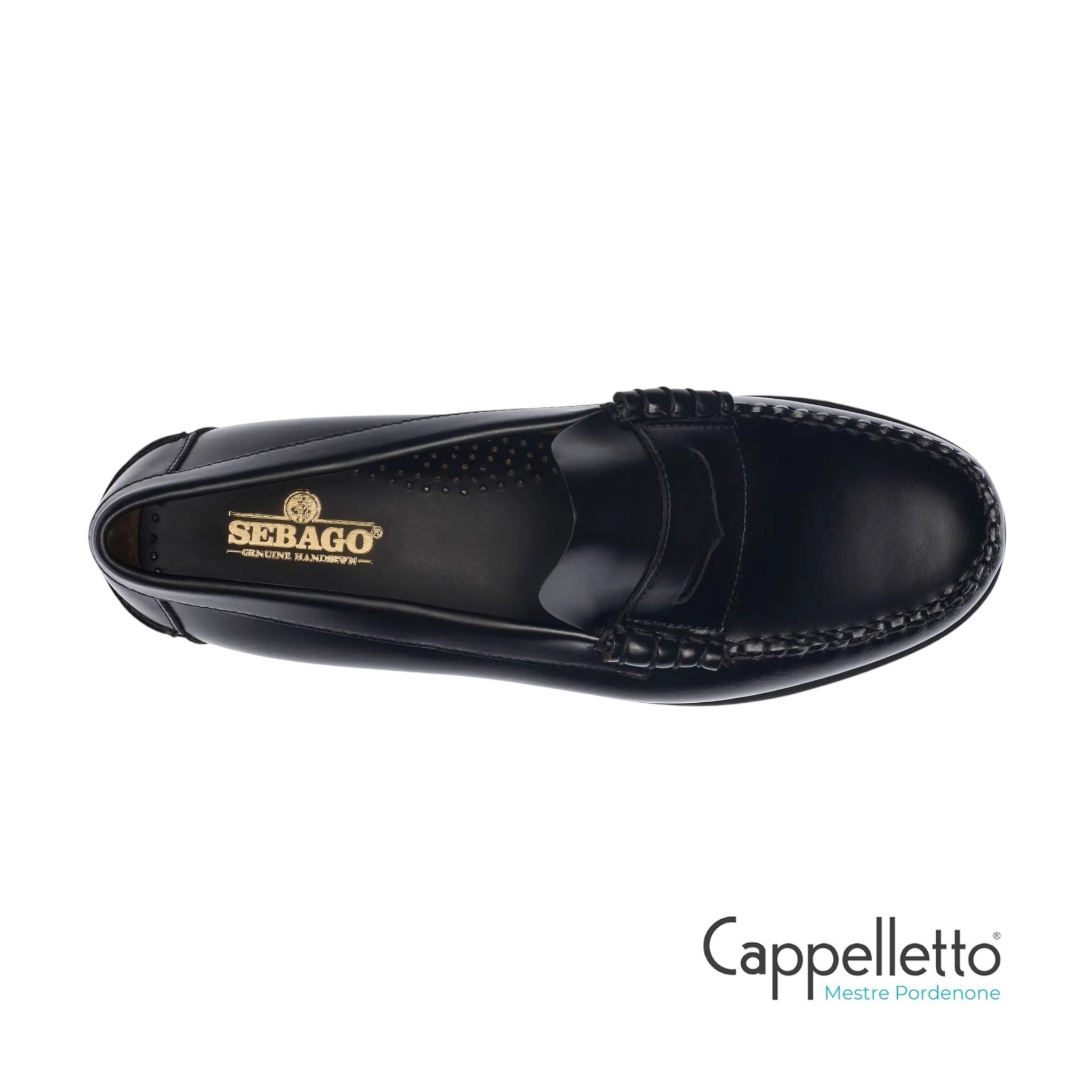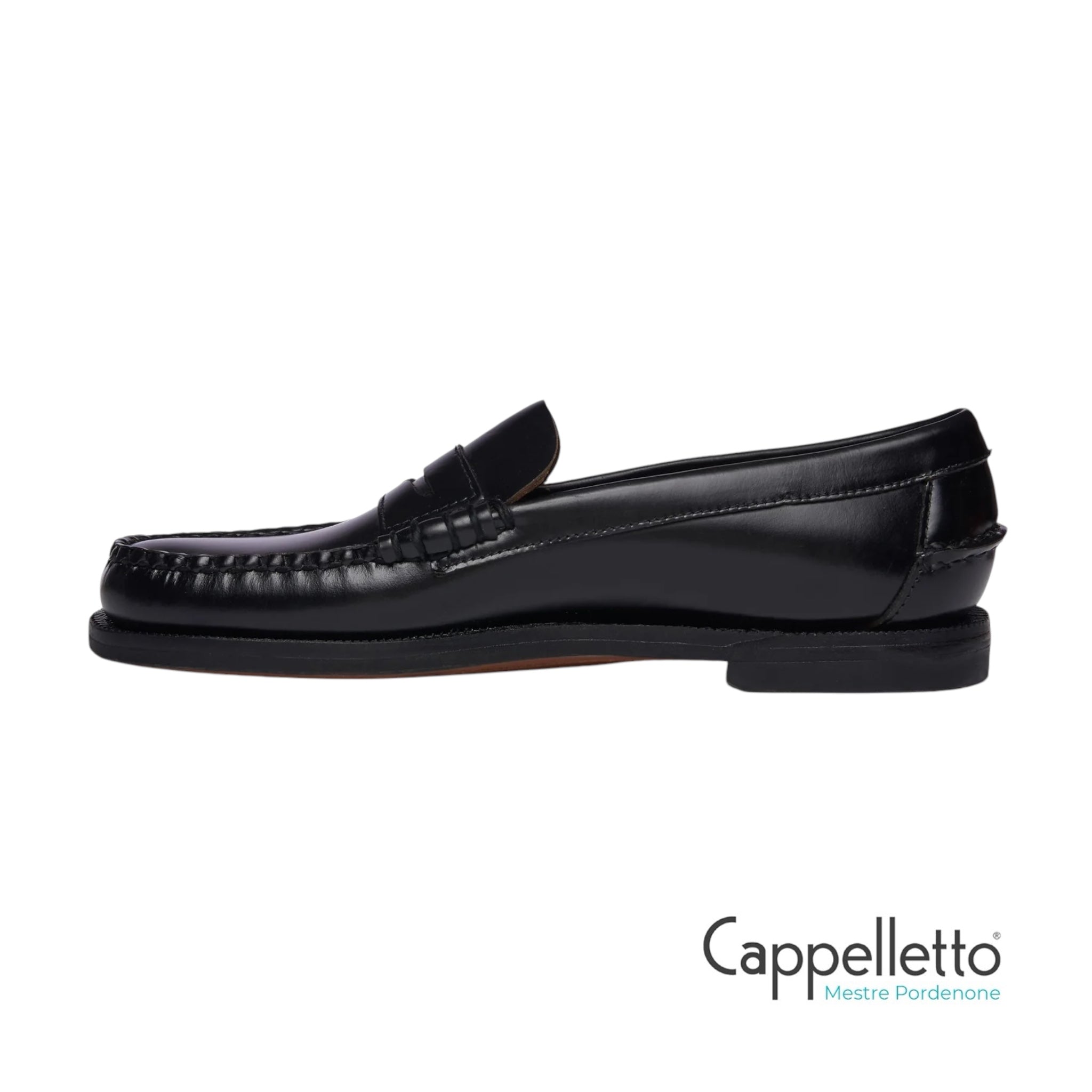 Realizzato in pelle pieno fiore spazzolata liscia per durare nel tempo e cucito a mano con la migliore lavorazione artigianale, questo penny loafer beefroll è un mocassino 4 stagioni con tomaia in pelle sfoderata, tacco modellato in gomma e suola in cuoio trattato per offrire resistenza, flessibilità e impermeabilità. I mocassini "Dan" sono un omaggio alla passione dei fondatori del marchio Sebago.