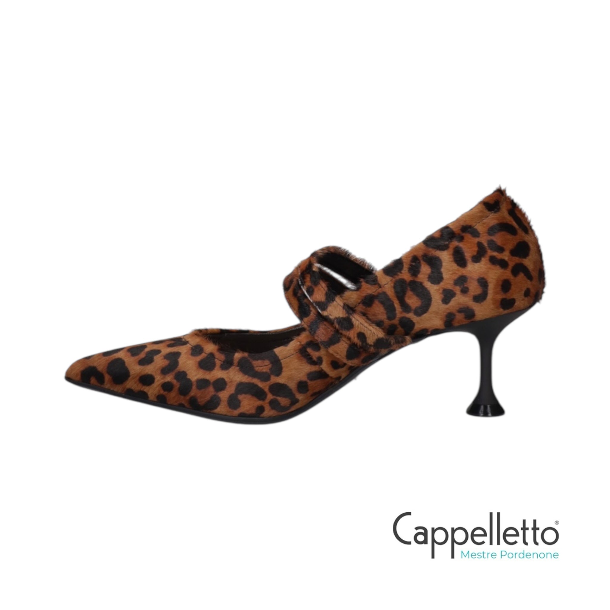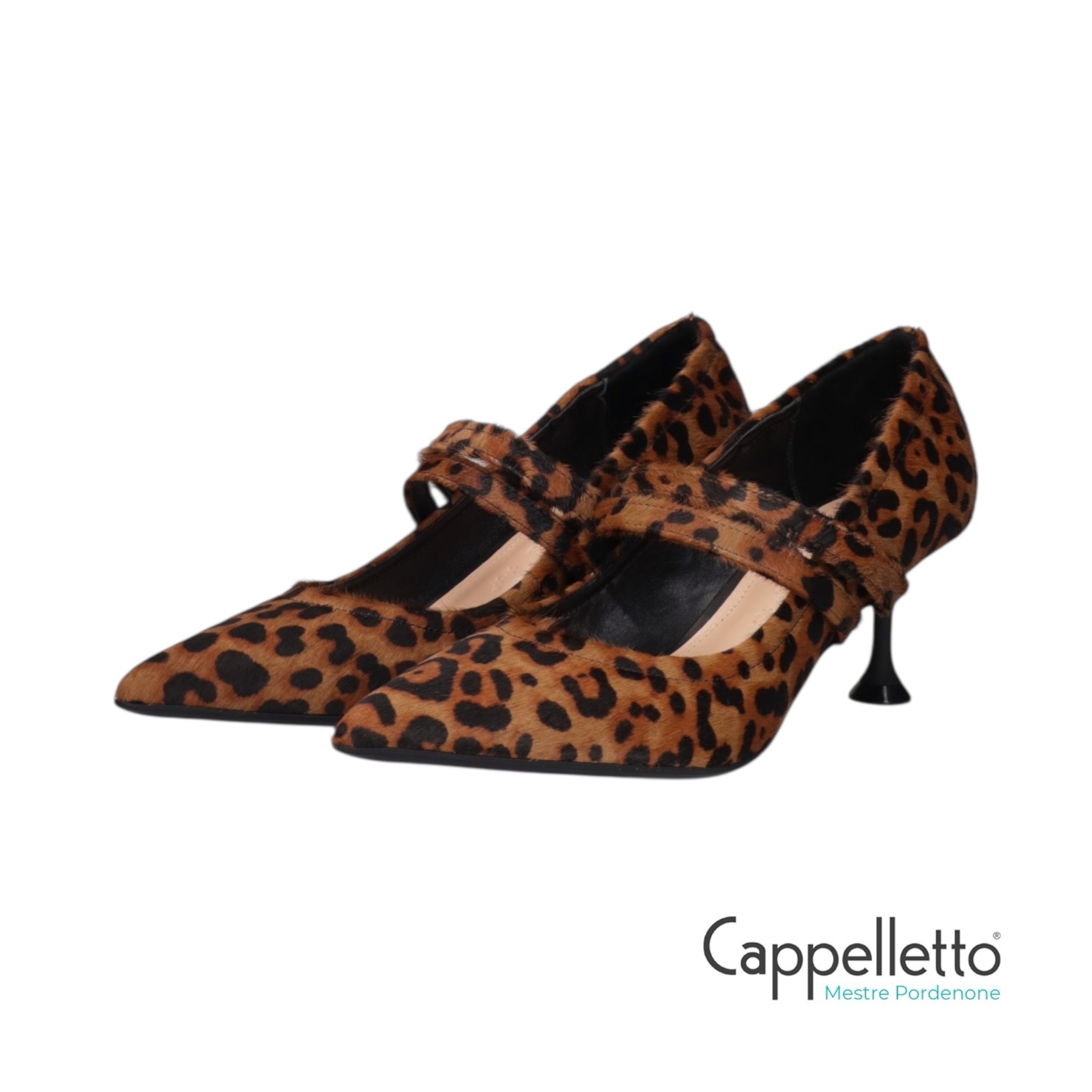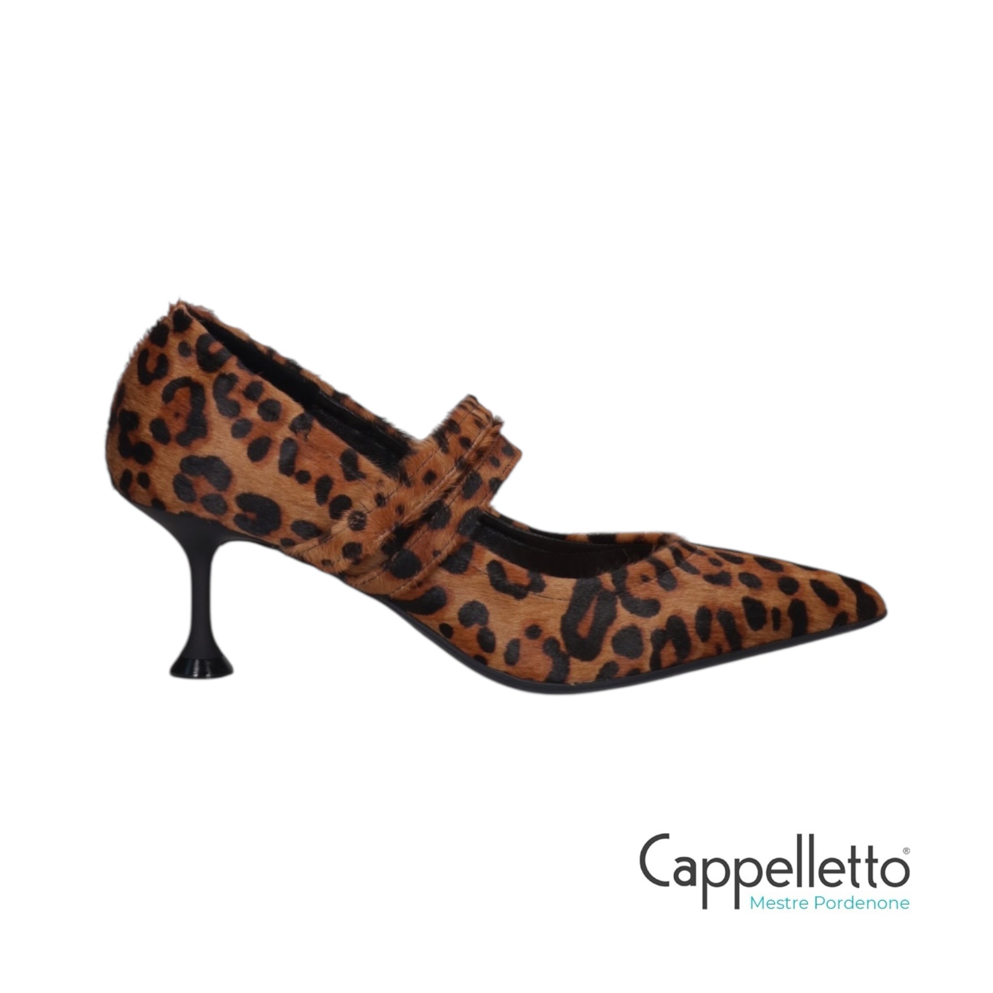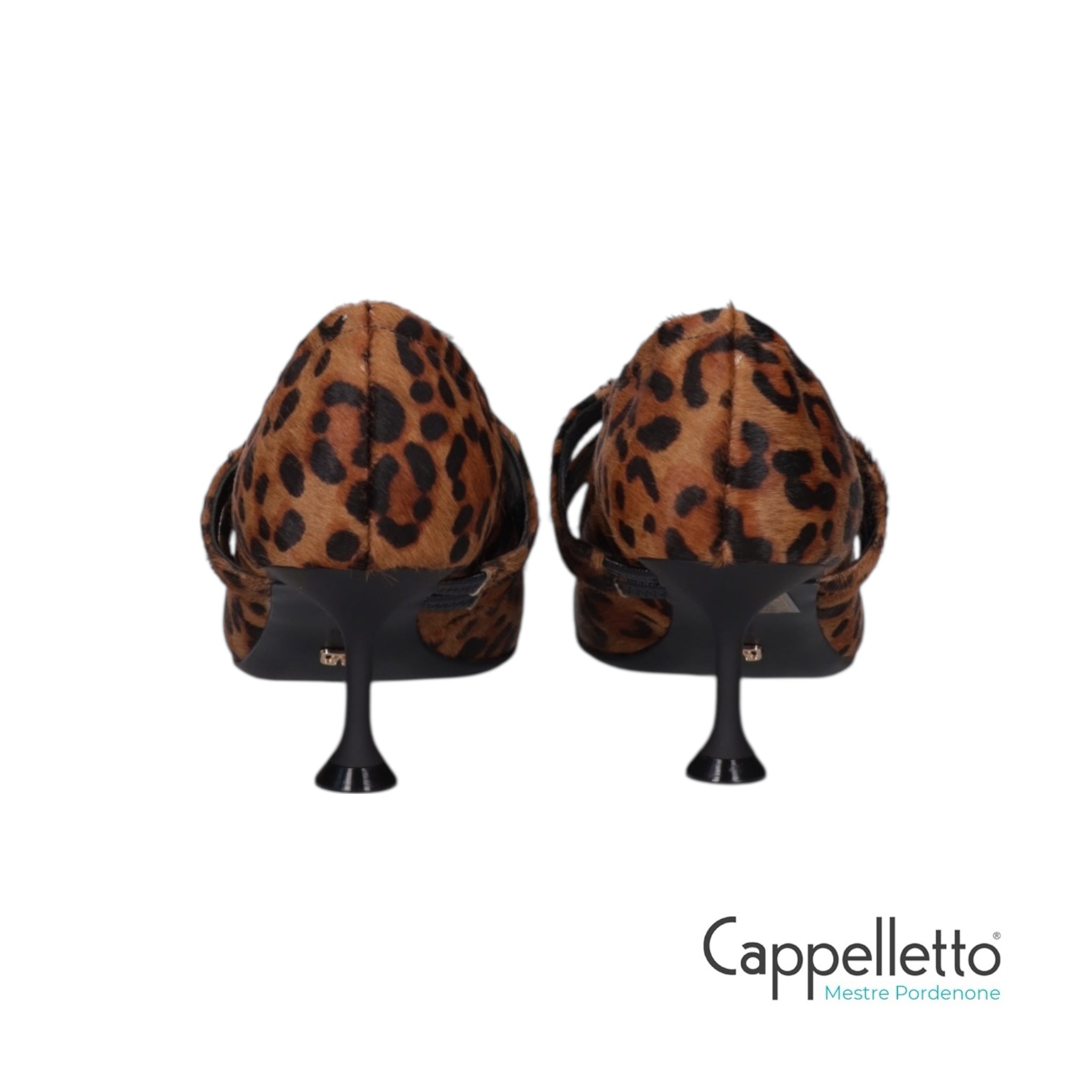 Décolleté in Cavallino Maculato con doppio cinturino sul collo del piede.