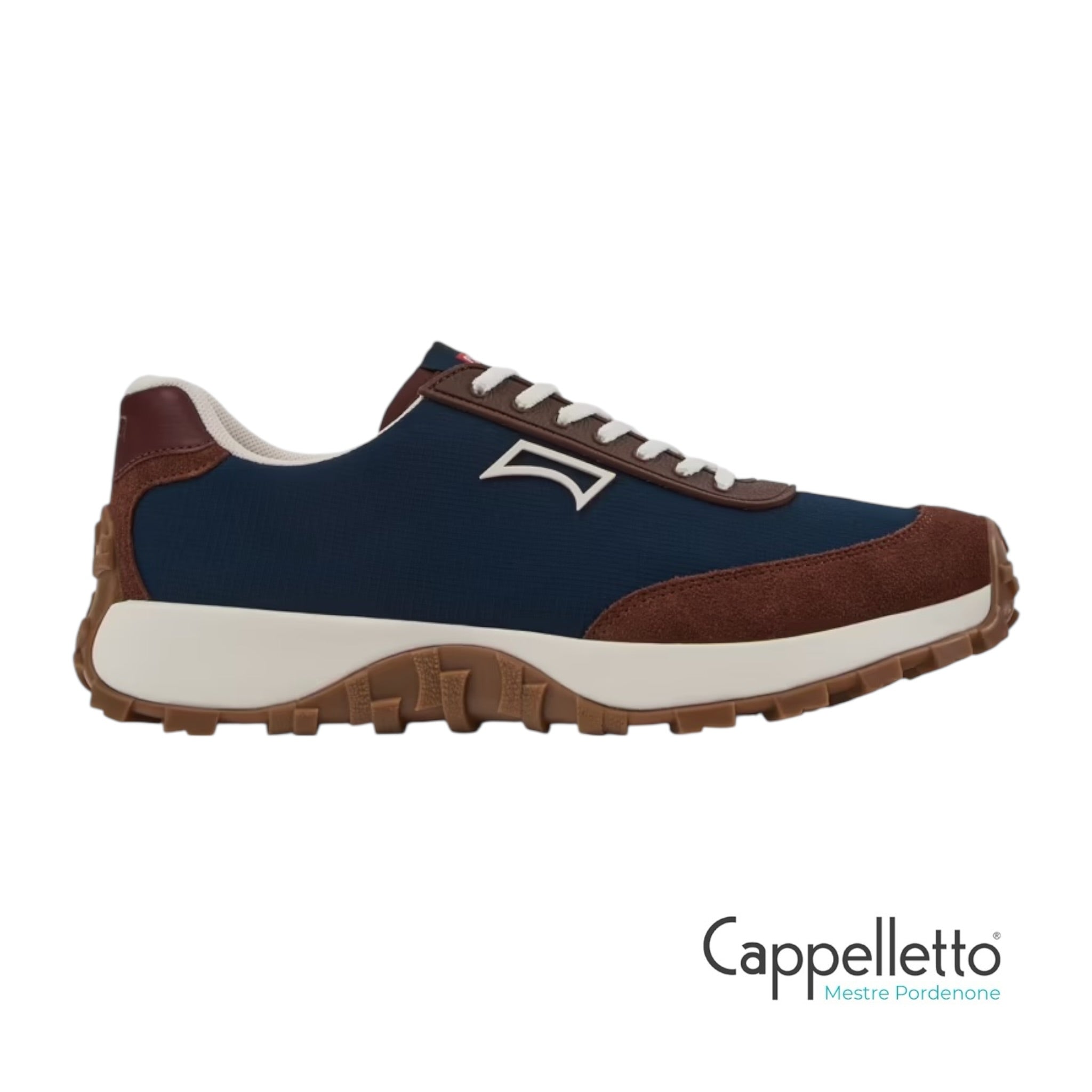 Sneakers Da uomo blu e marroni in tessuto e nabuk in Pelle di vitello con plantari OrthoLite® Recycled™ rimovibili, intersuola in EVA e suole in gomma Vibram®.