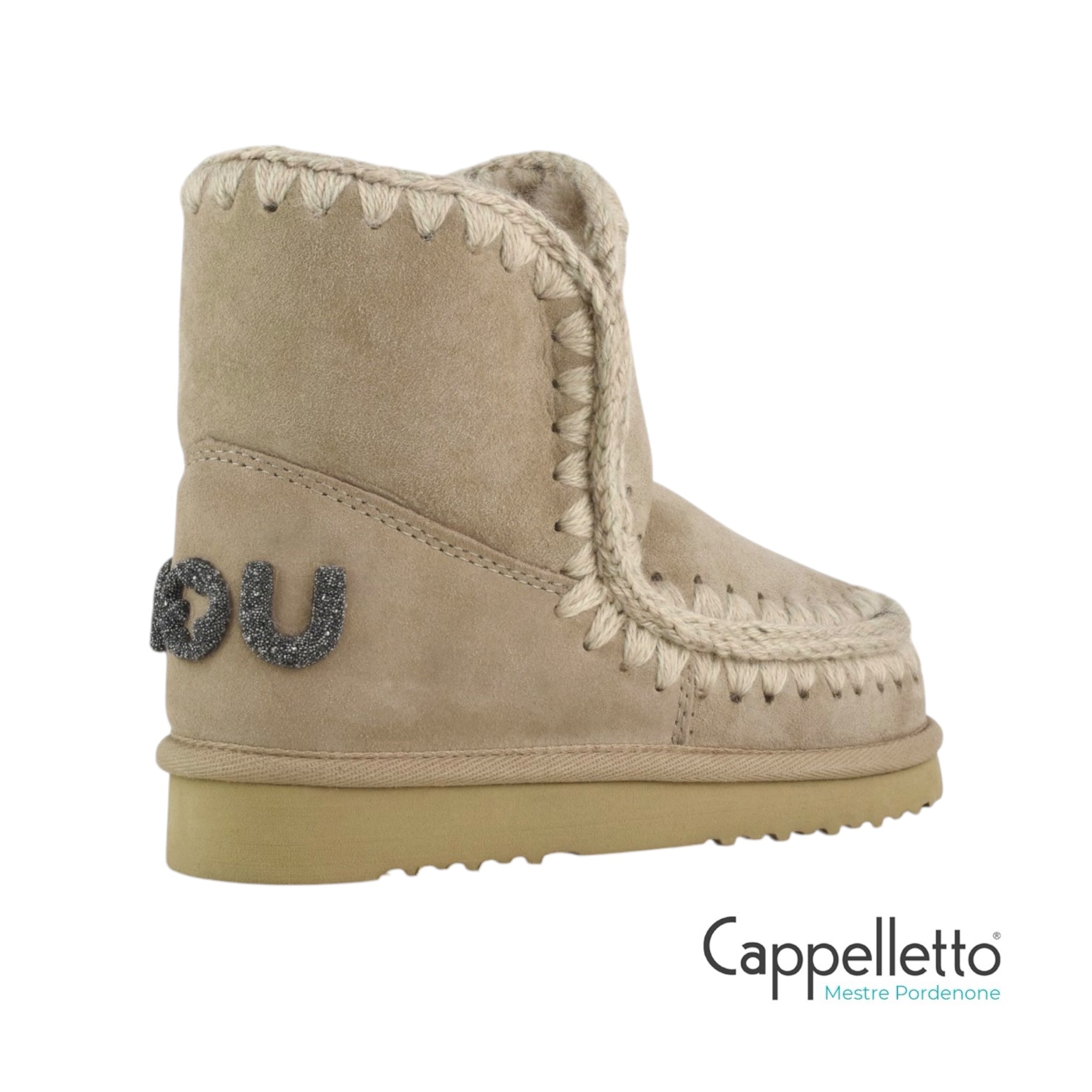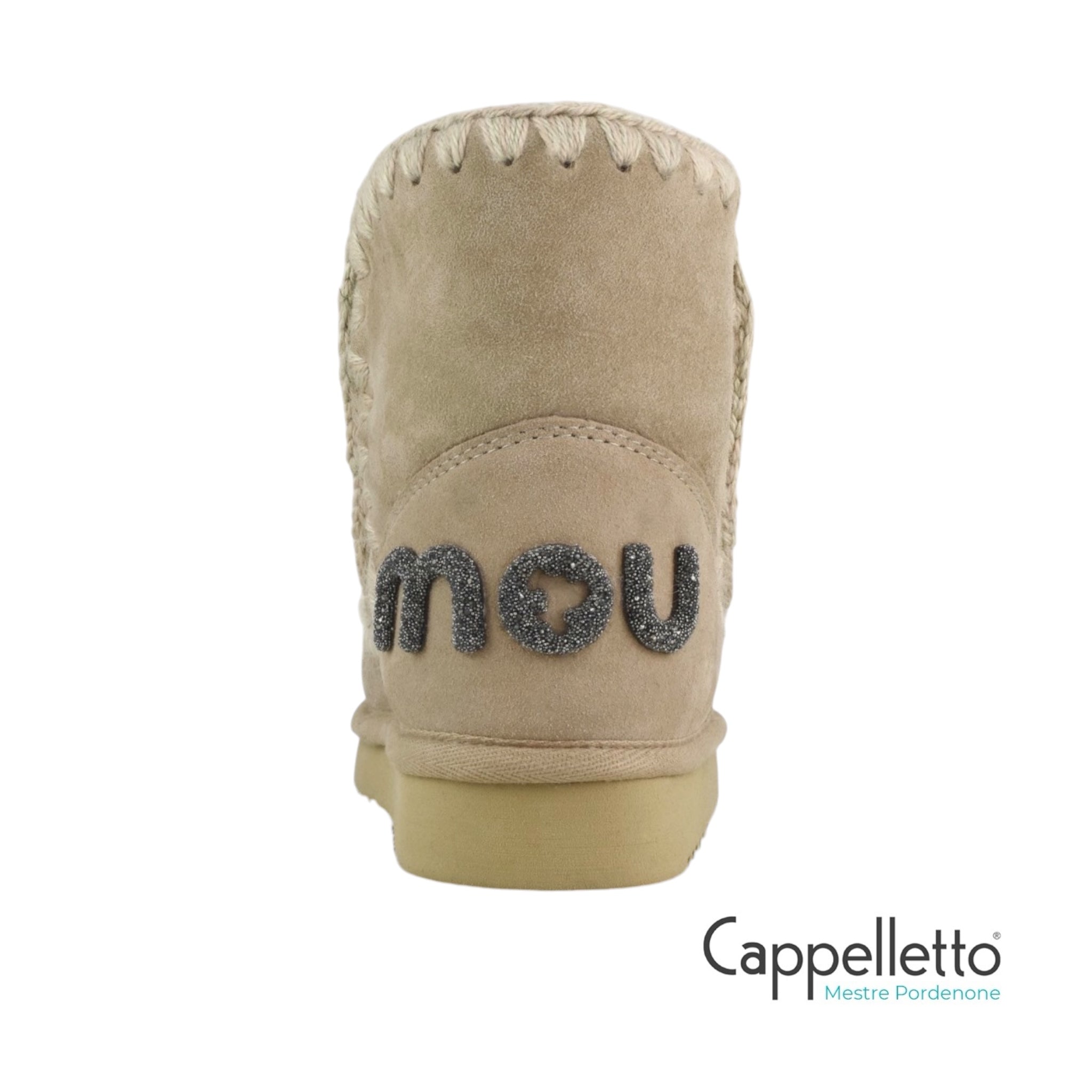 Il modello più venduto di eskimo 18 con logo glitterato è perfetto per aggiungere un tocco di luce al tuo look, valorizzato dalle iconiche cuciture in lana all'uncinetto firmate mou.