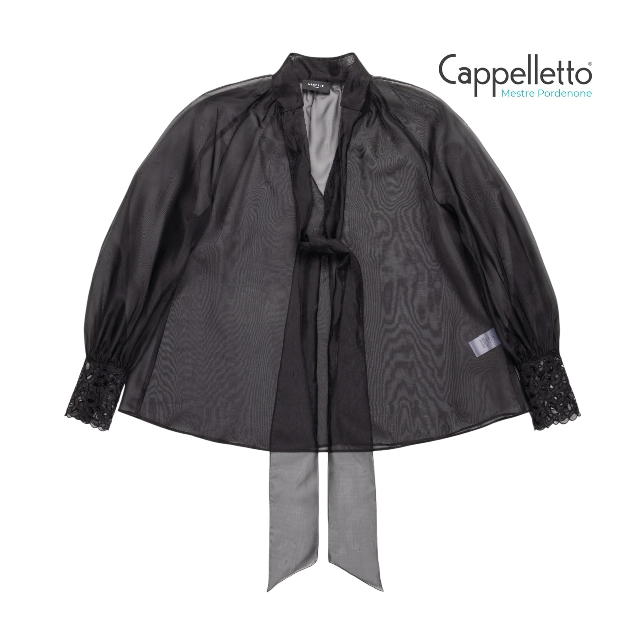 FIJI Blusa Polso Ricamato Organza - Nero