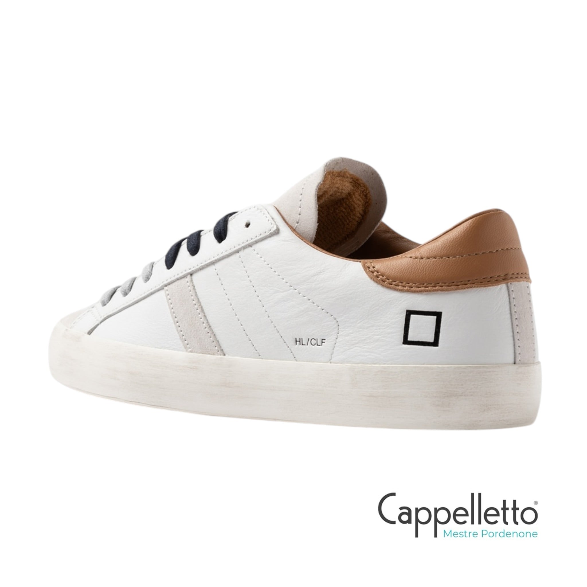 Linguetta in suede in tono su cui è impressa la scritta D.A.T.E.