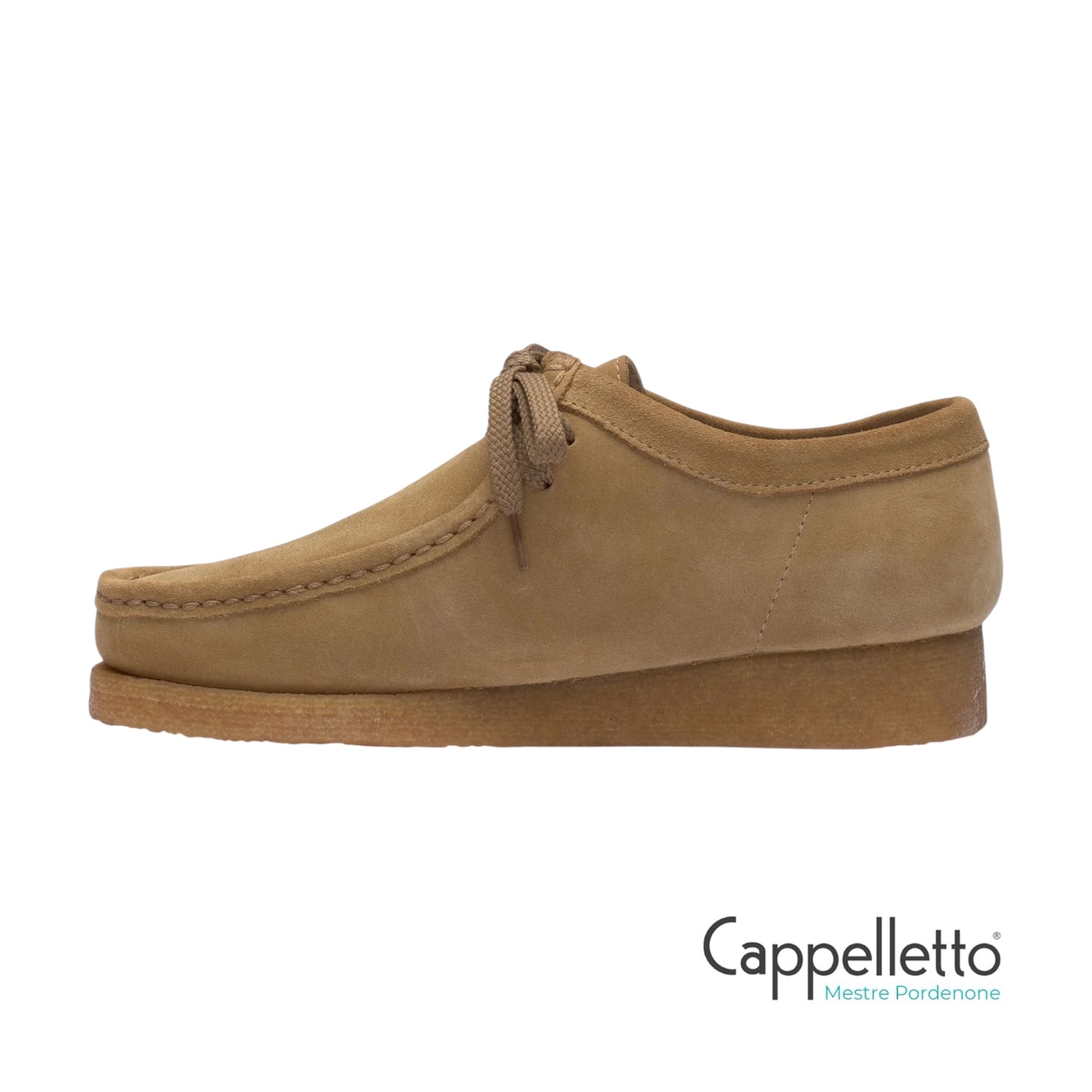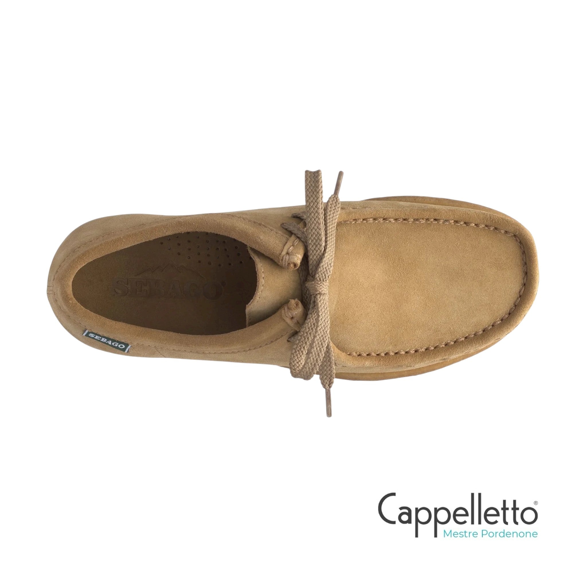 In pelle scamosciata, presenta struttura tubolare, taglio a punta moc, fodera in pelle e suola in gomma Para 2 strati per garantire elevata elasticità e resistenza all'abrasione, all'acqua e agli acidi.