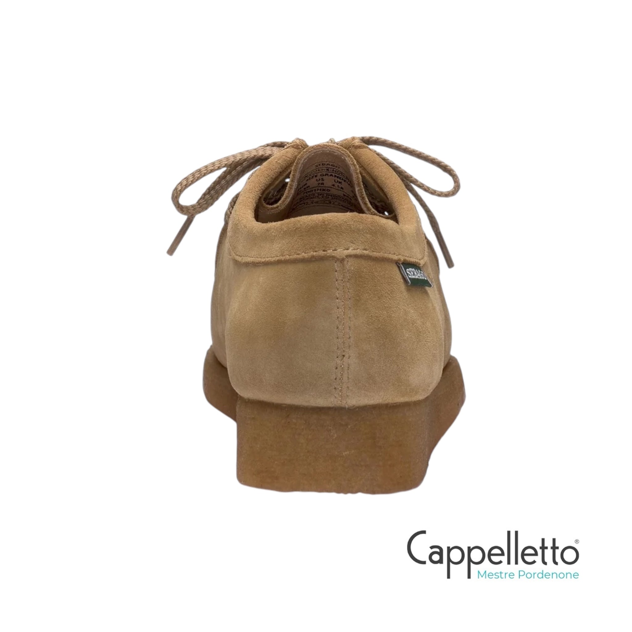 In pelle scamosciata, presenta struttura tubolare, taglio a punta moc, fodera in pelle e suola in gomma Para 2 strati per garantire elevata elasticità e resistenza all'abrasione, all'acqua e agli acidi.