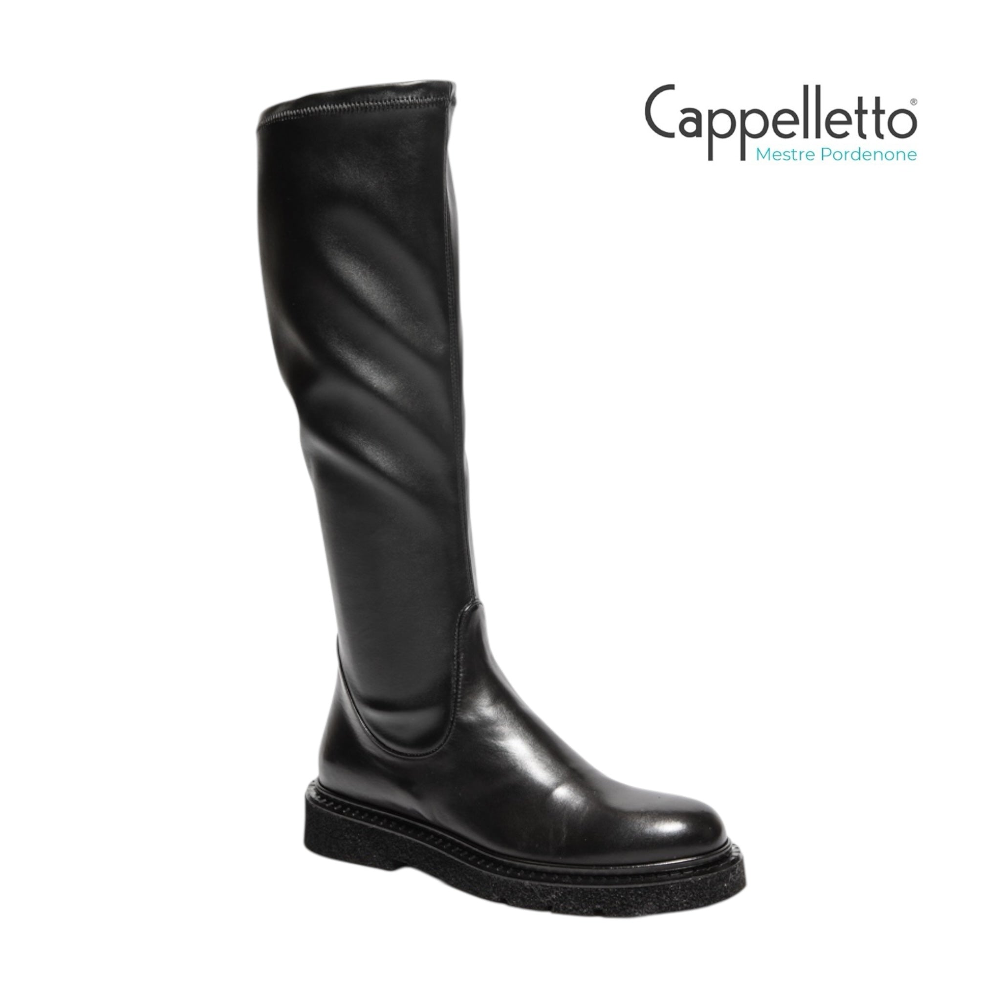 Realizzato in nappa nera con gambale in nappa sintetica stretch, avvolge perfettamente la gamba offrendo comfort e libertà di movimento.