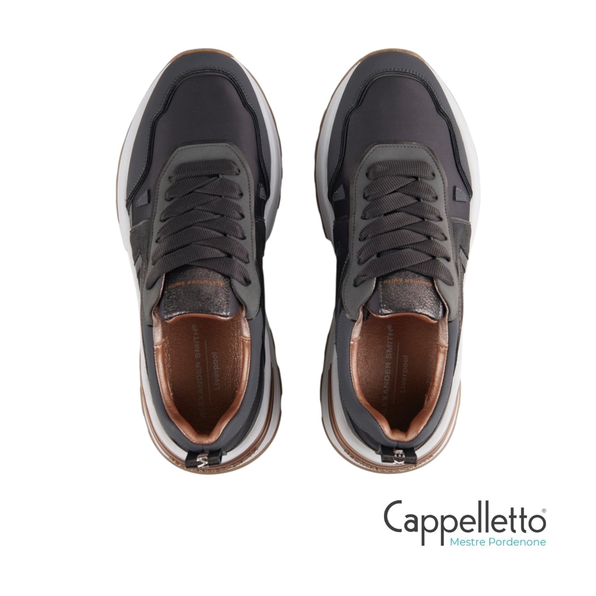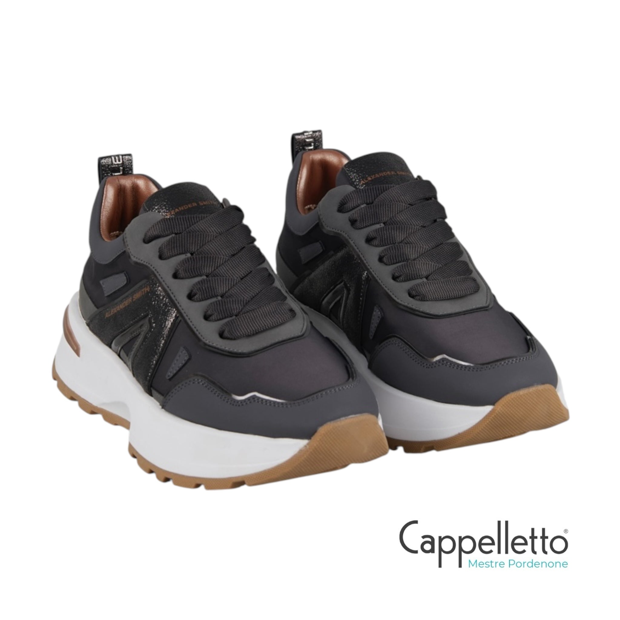 Il nuovo modello firmato Alexander Smith, che prende ispirazione da una delle città più iconiche del Regno Unito, è la nuova proposta running del brand: linea affusolata, suola importante e dettagli ricercati danno vita ad una sneakers versatile e distintiva, in questa variante in nylon grigio scuro e laminato polveroso in tinta.