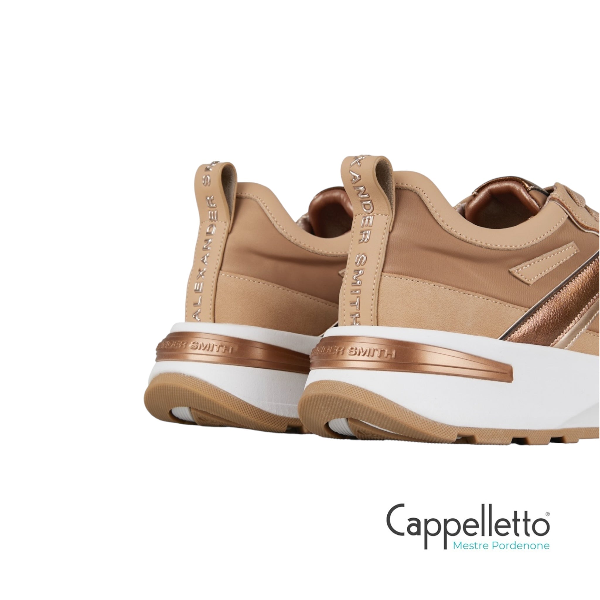 Il nuovo modello firmato Alexander Smith, che prende ispirazione da una delle città più iconiche del Regno Unito, è la nuova proposta running del brand: linea affusolata, suola importante e dettagli ricercati danno vita ad una sneakers versatile e distintiva, in questa variante in nylon sabbia e laminato polveroso in tinta.