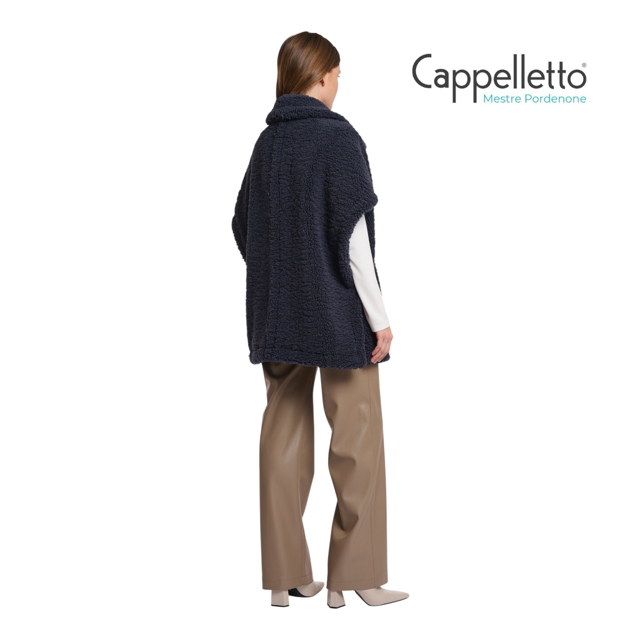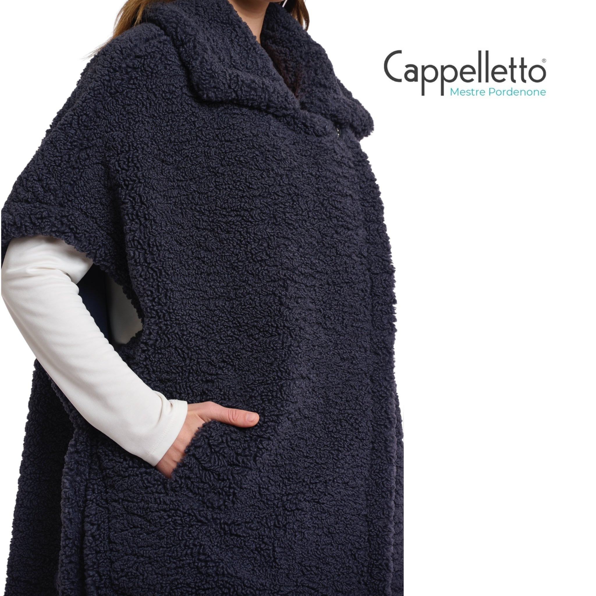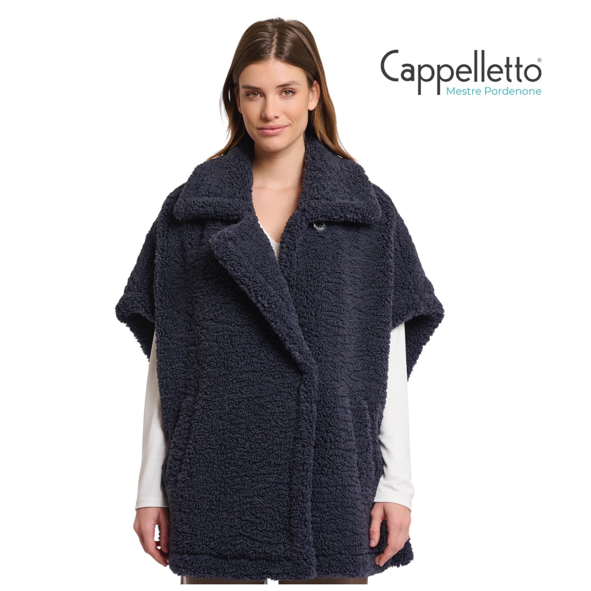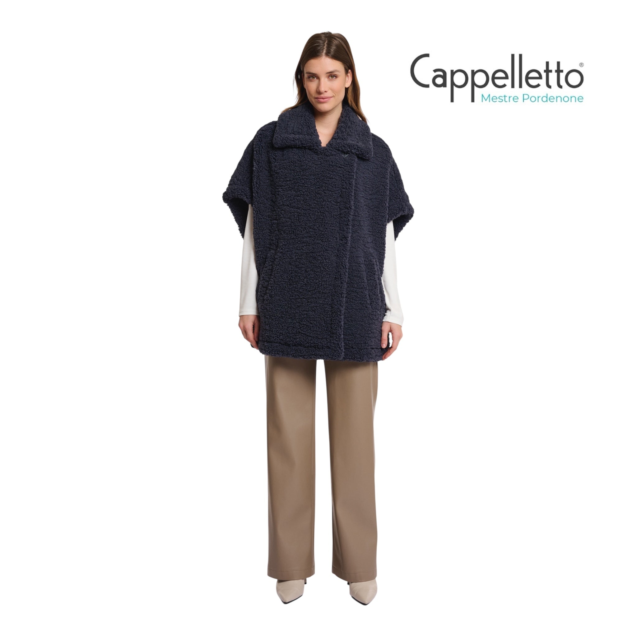 Morbida e lussuosa mantella in peluche. Questa mantella squadrata presenta tasche laterali, chiusura con bottoni, spalle basse e colletto con revers. Questa splendida mantella è perfetta per un look a strati.