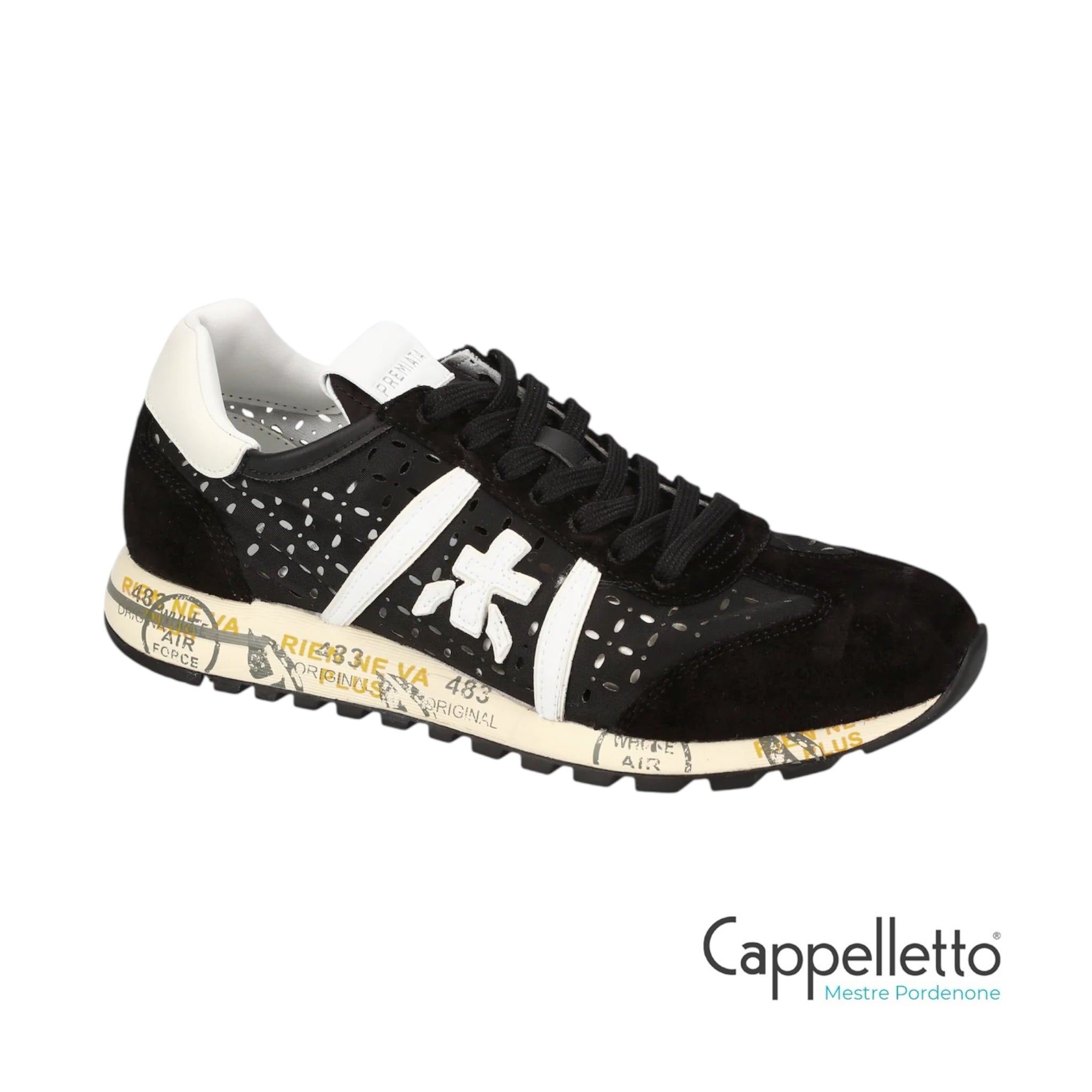 La tomaia in tessuto e suede, con il logo Premiata sul laterale, caratterizzano questo emblema.