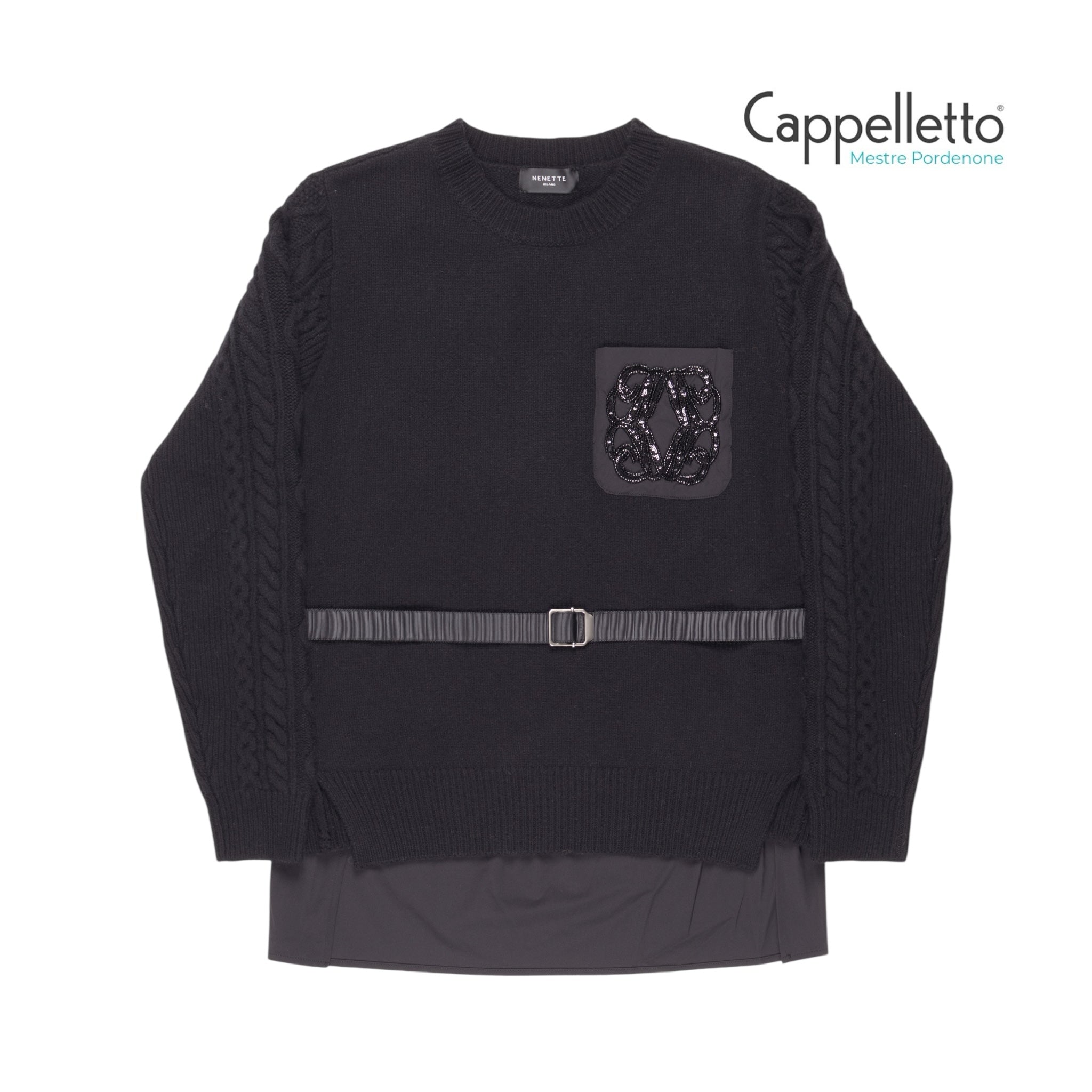 MIG Maglia Girocollo Inserto Nylon - Nero