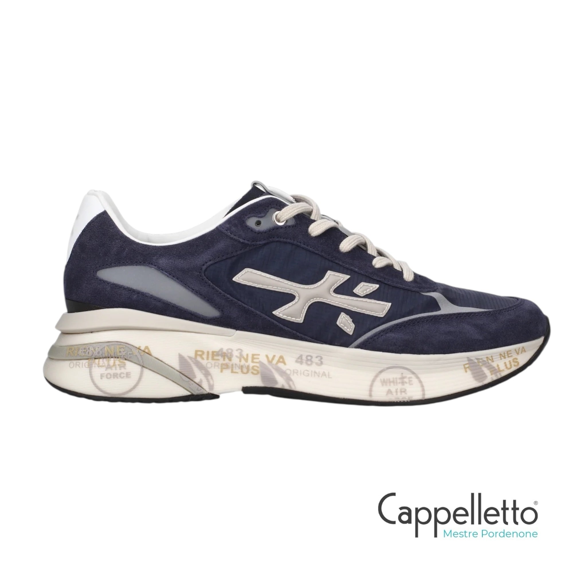 La nuova silhouette è ricca di dettagli: logo sul laterale esterno, scritta PREMIATA sul laterale interno e nome del modello sull'etichetta.