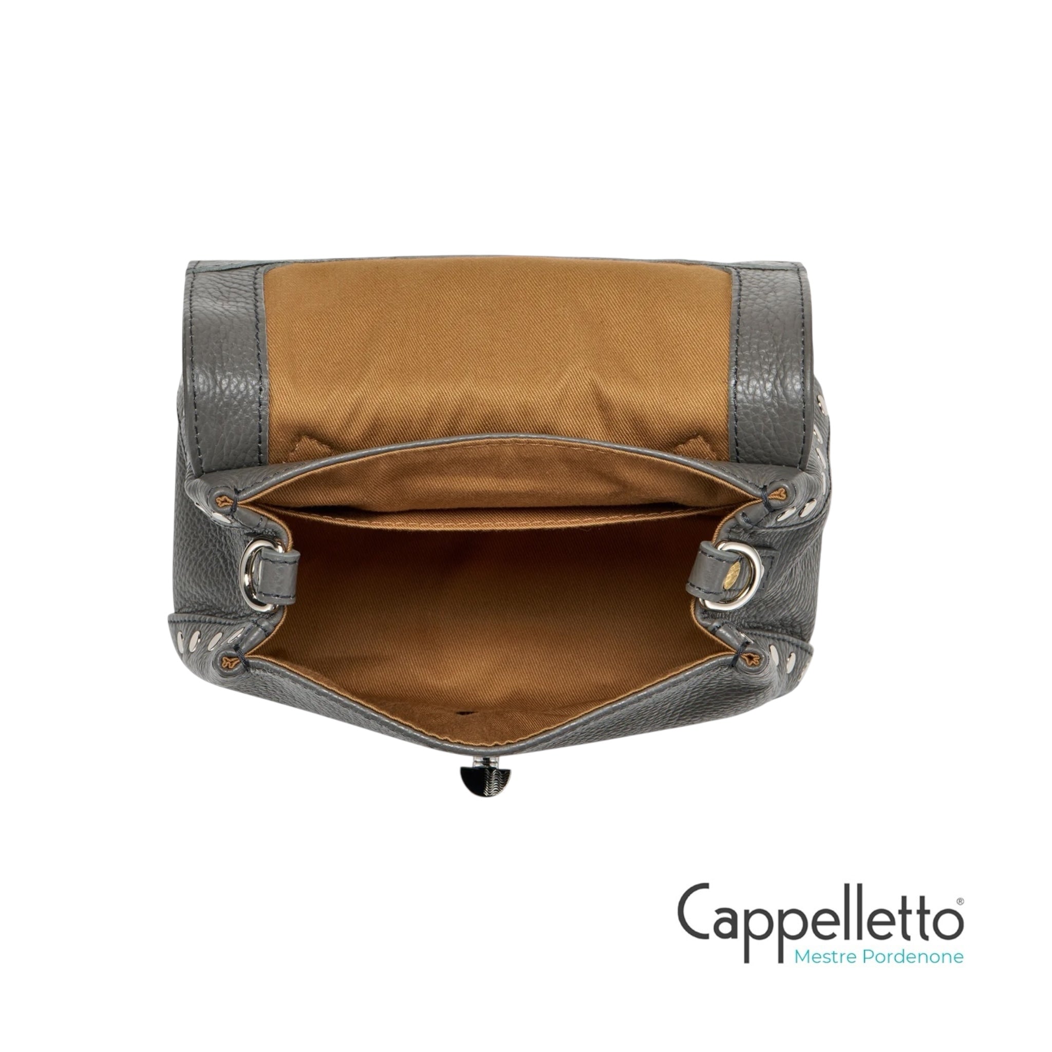 Non può mancare nel tuo guardaroba questa borsa Postina® in pelle martellata, con fodera e tasca interna e doppia chiusura.