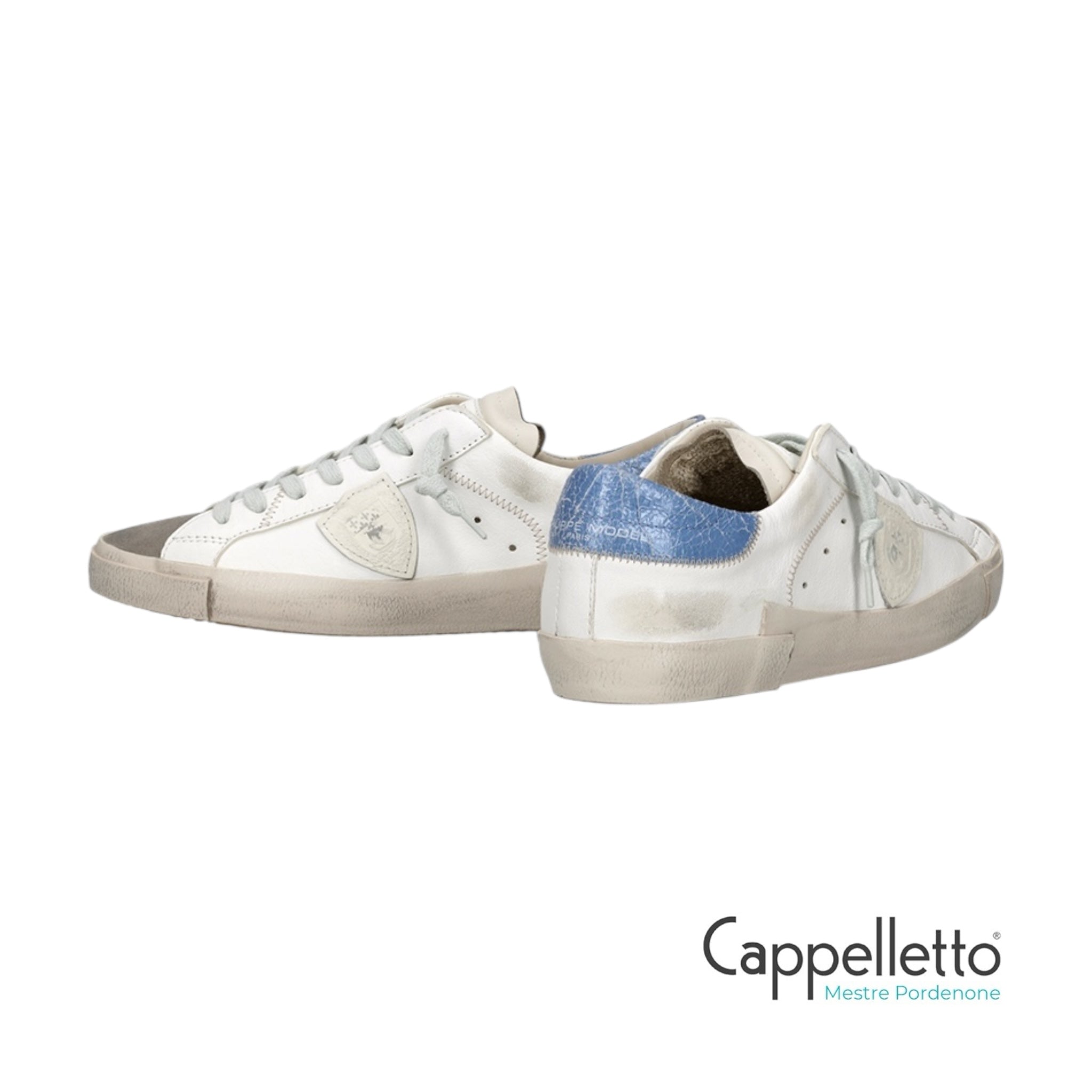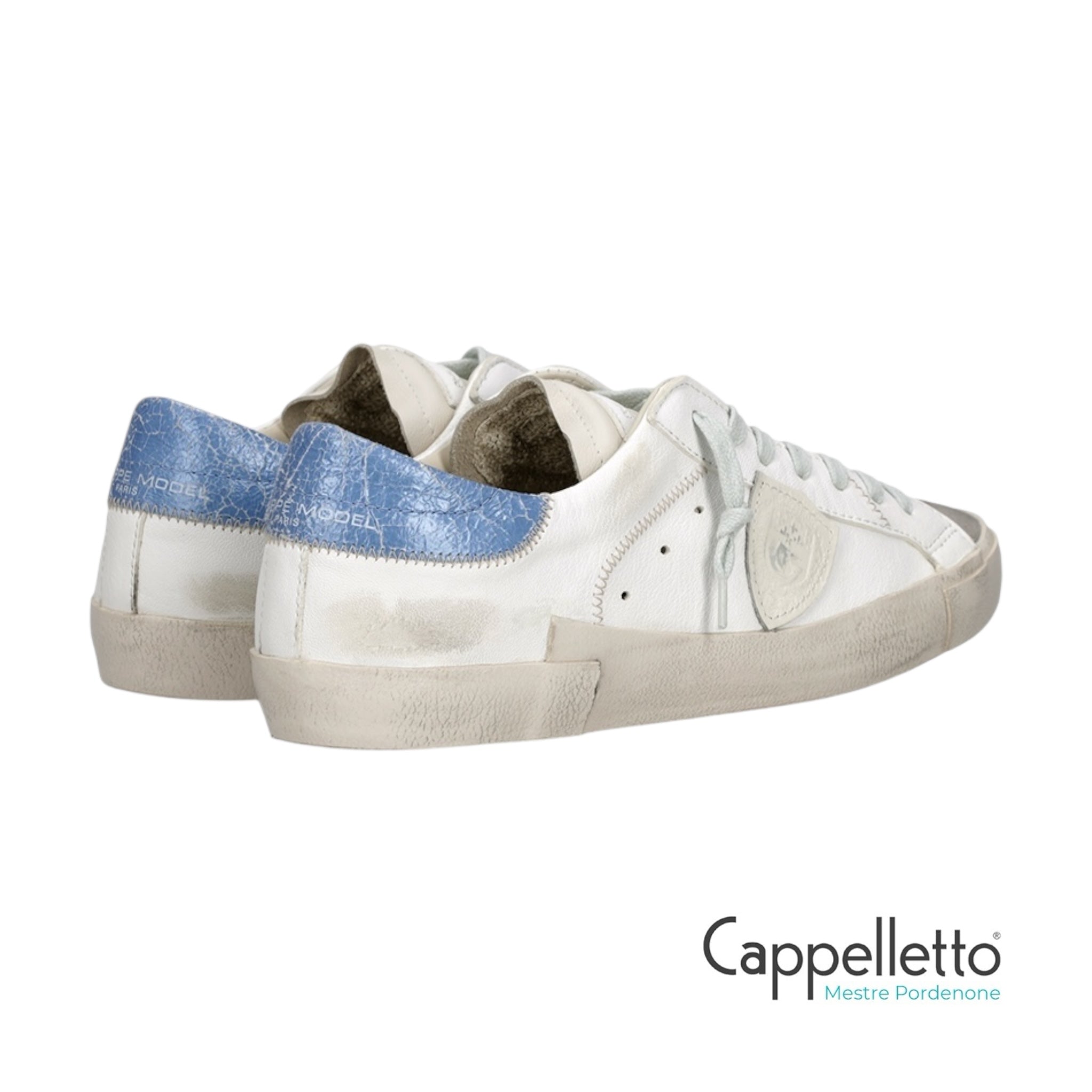 Sneaker bassa in pelle con spoiler a contrasto in pelle cracklè celeste con logo.