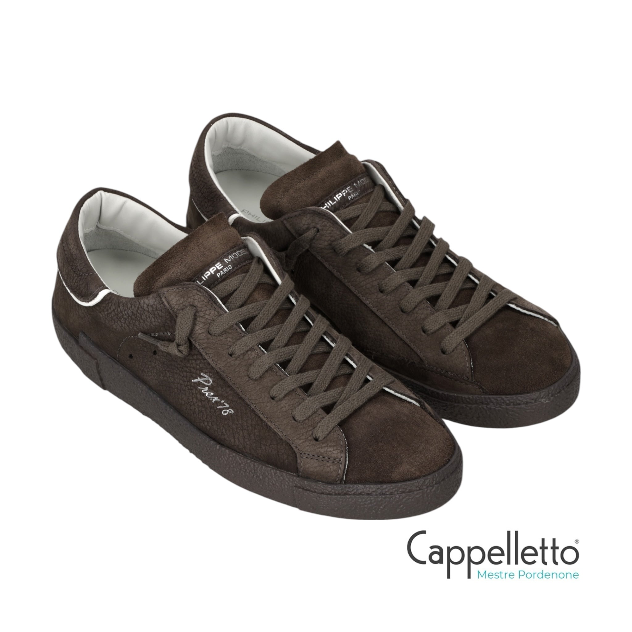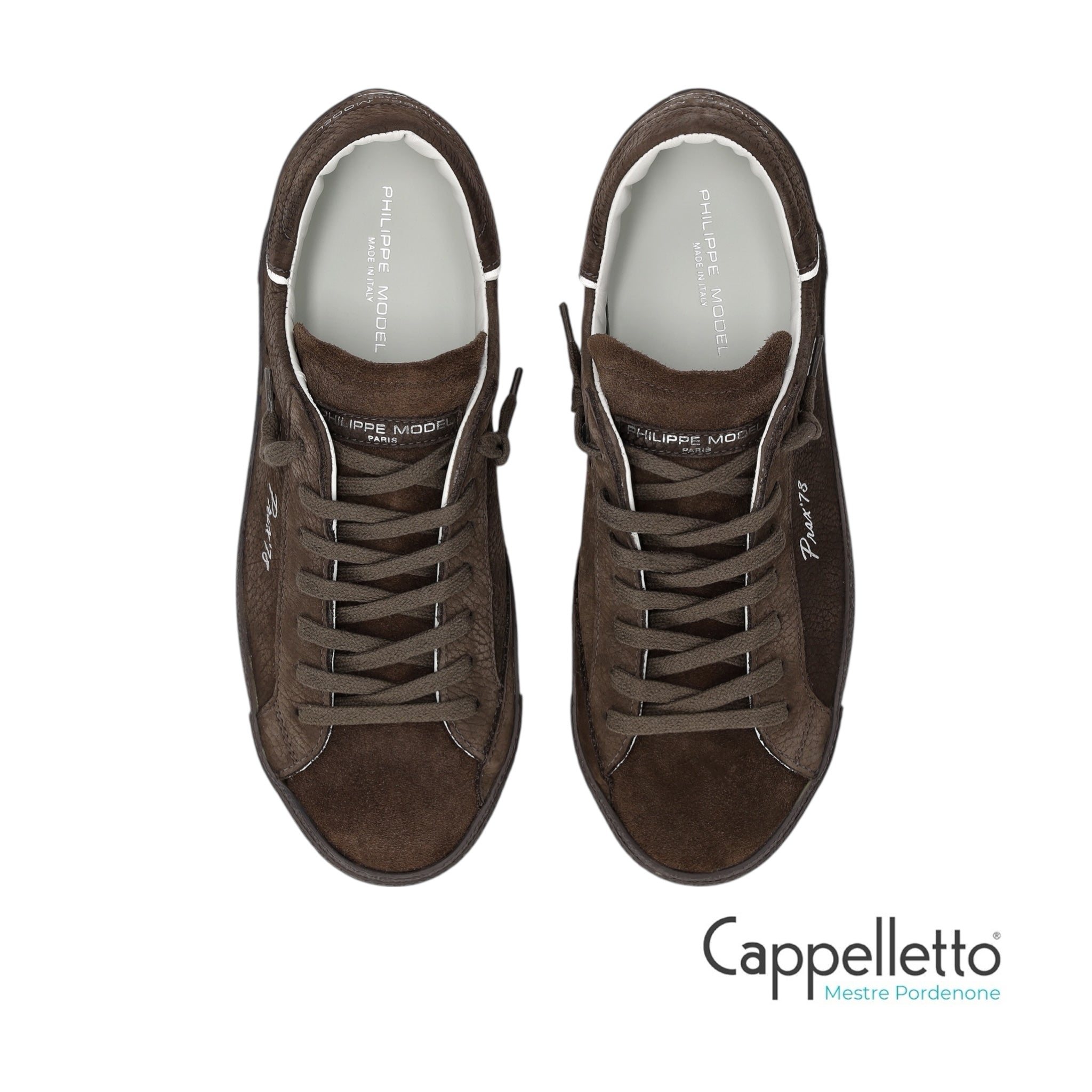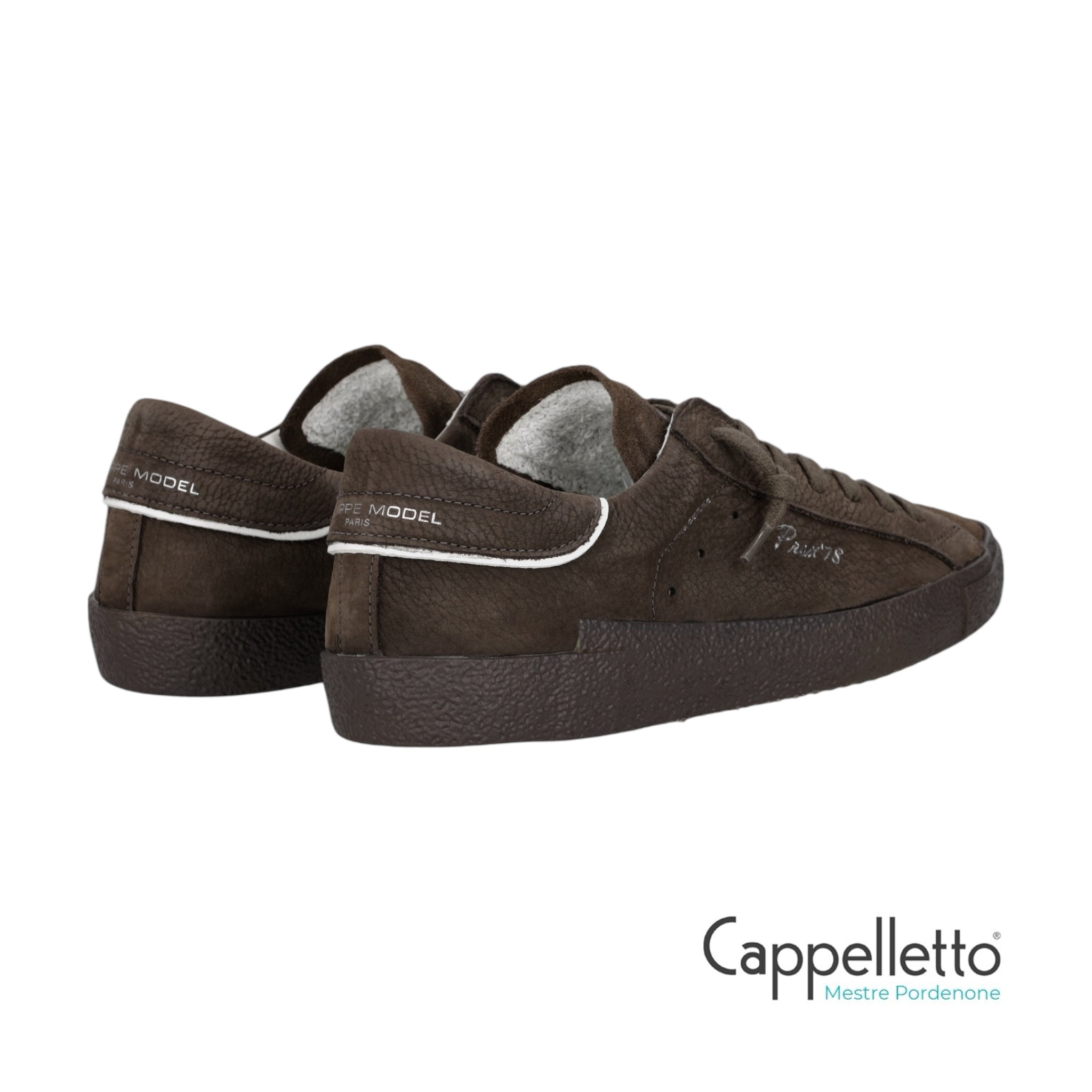 Sneaker bassa in nubuck monochrome marrone testa di moro.