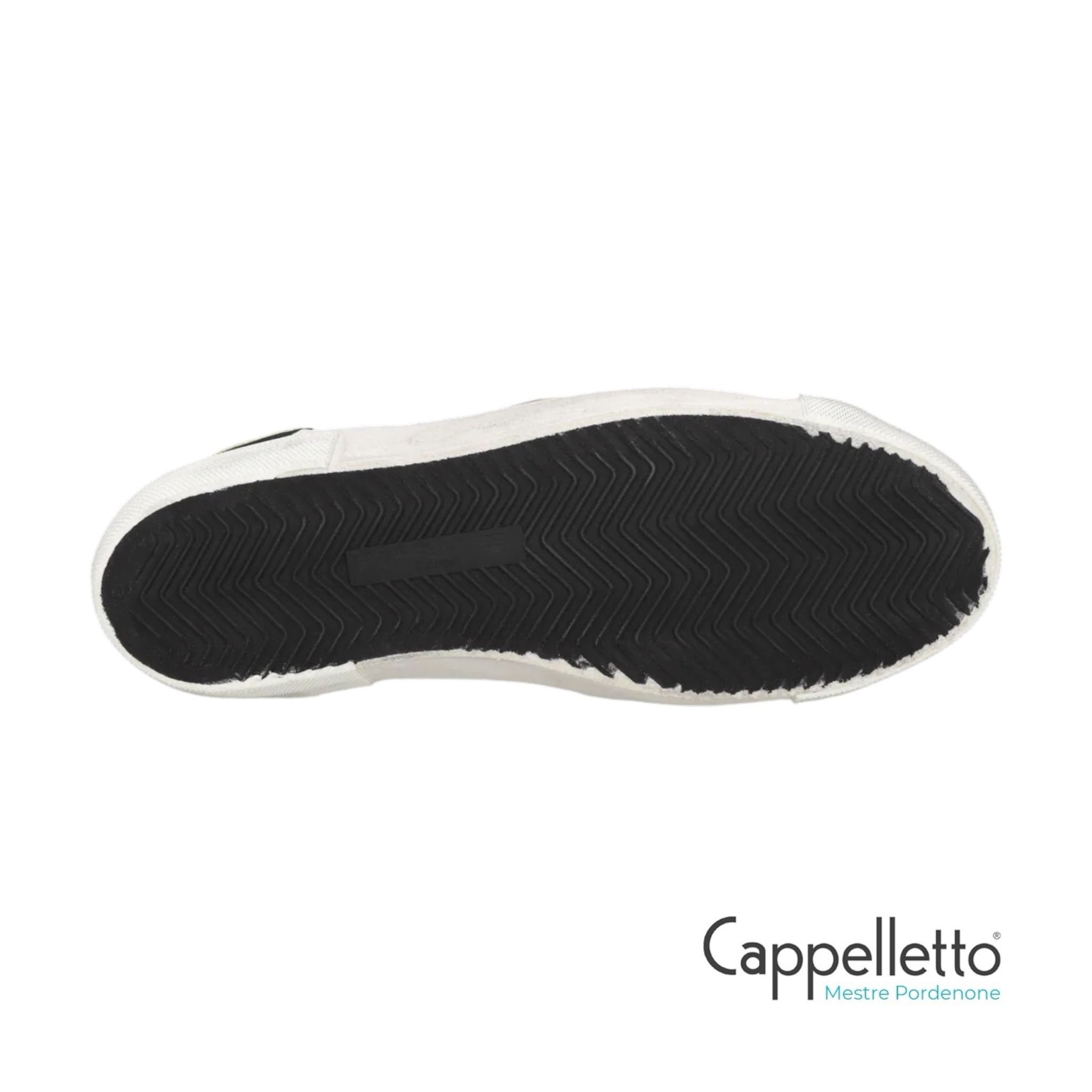 Foderata internamente in spugna di cotone, ha soletta interna imbottita ed estraibile, suola in gomma fasciatura artigianale irregolare con sporcature.