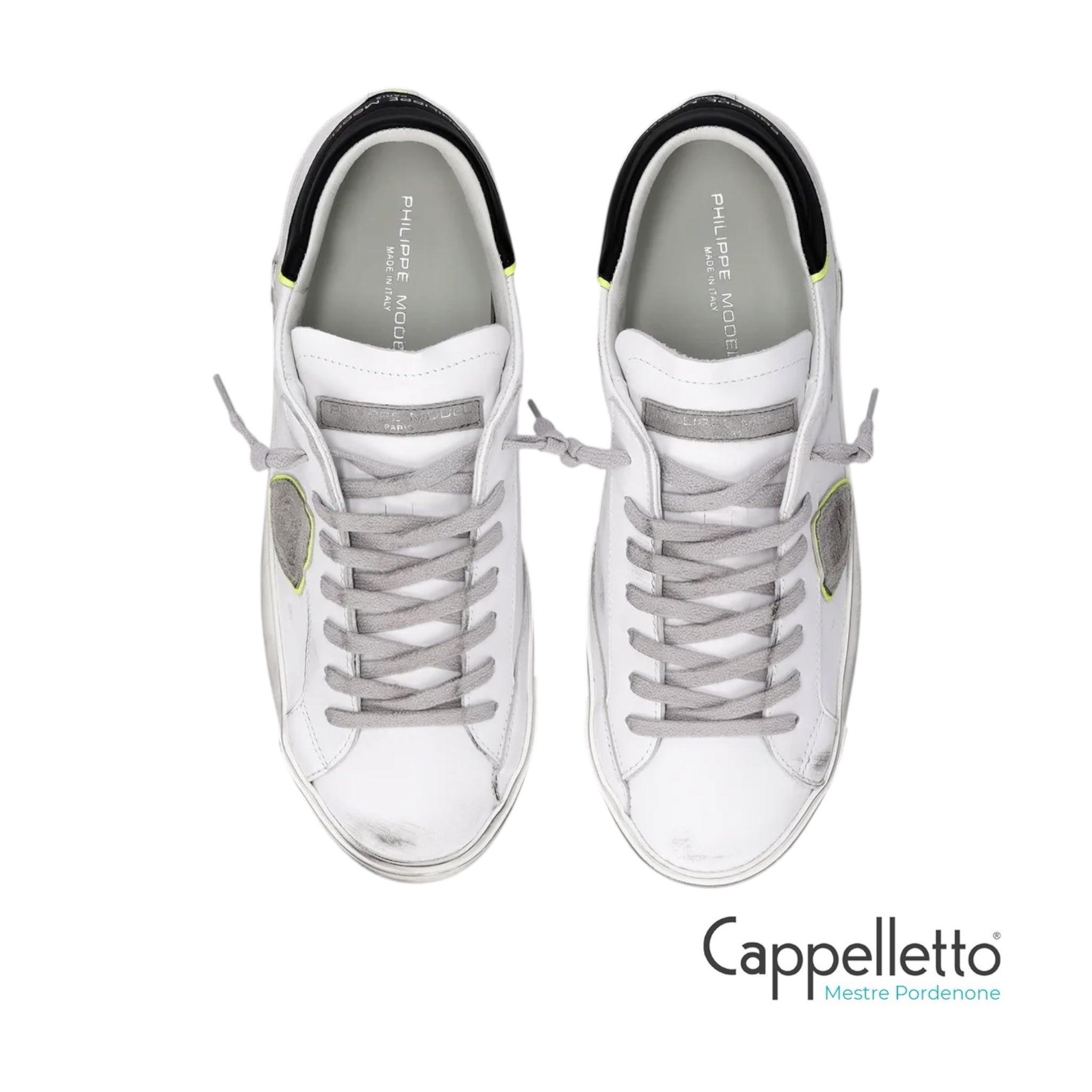 In questa Prsx iconica le linee street vengono addolcite da una tomaia in pelle di vitello effetto used con scudo e spoiler nero con profili fluo.