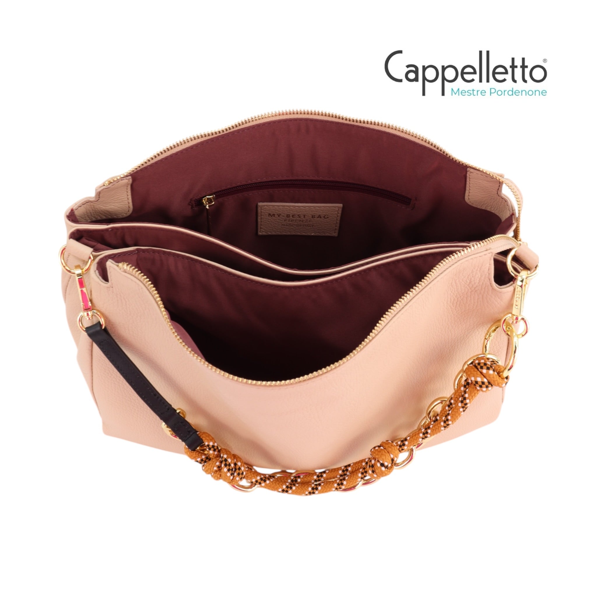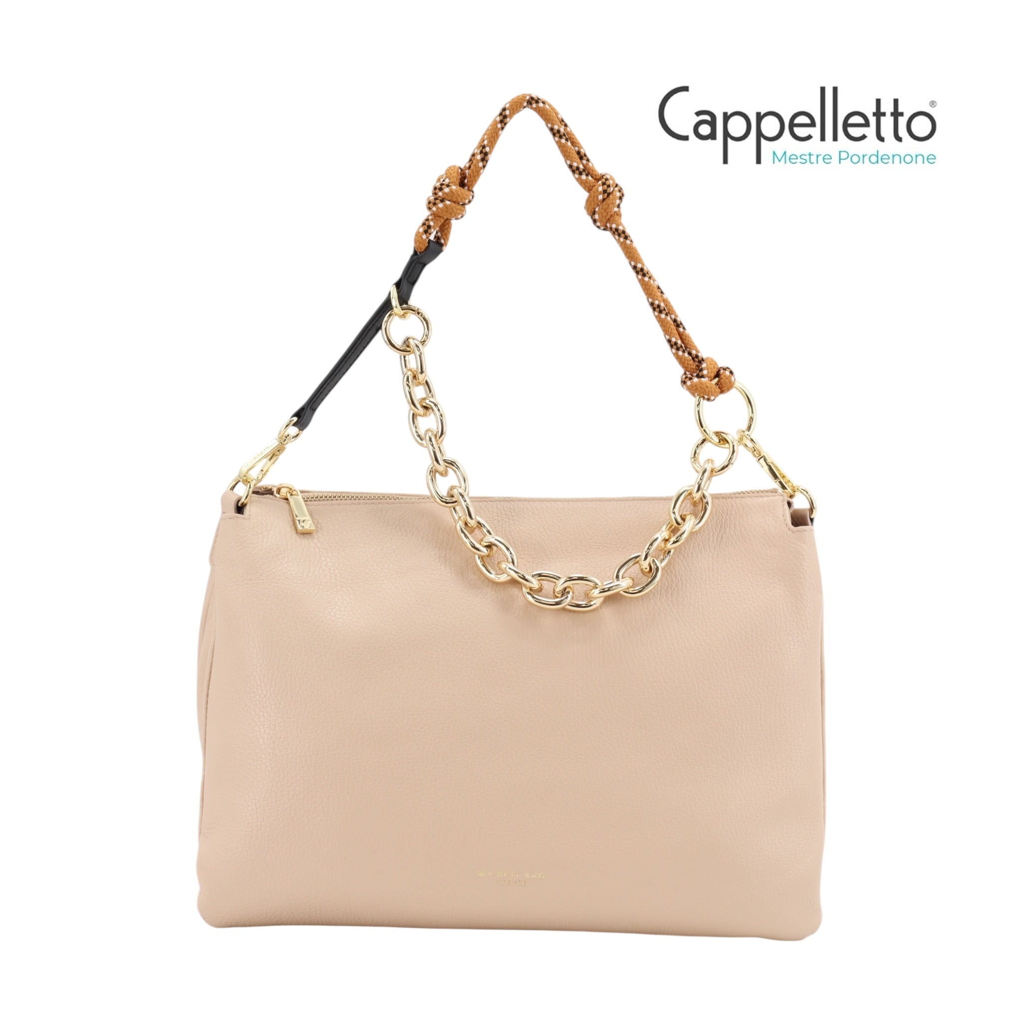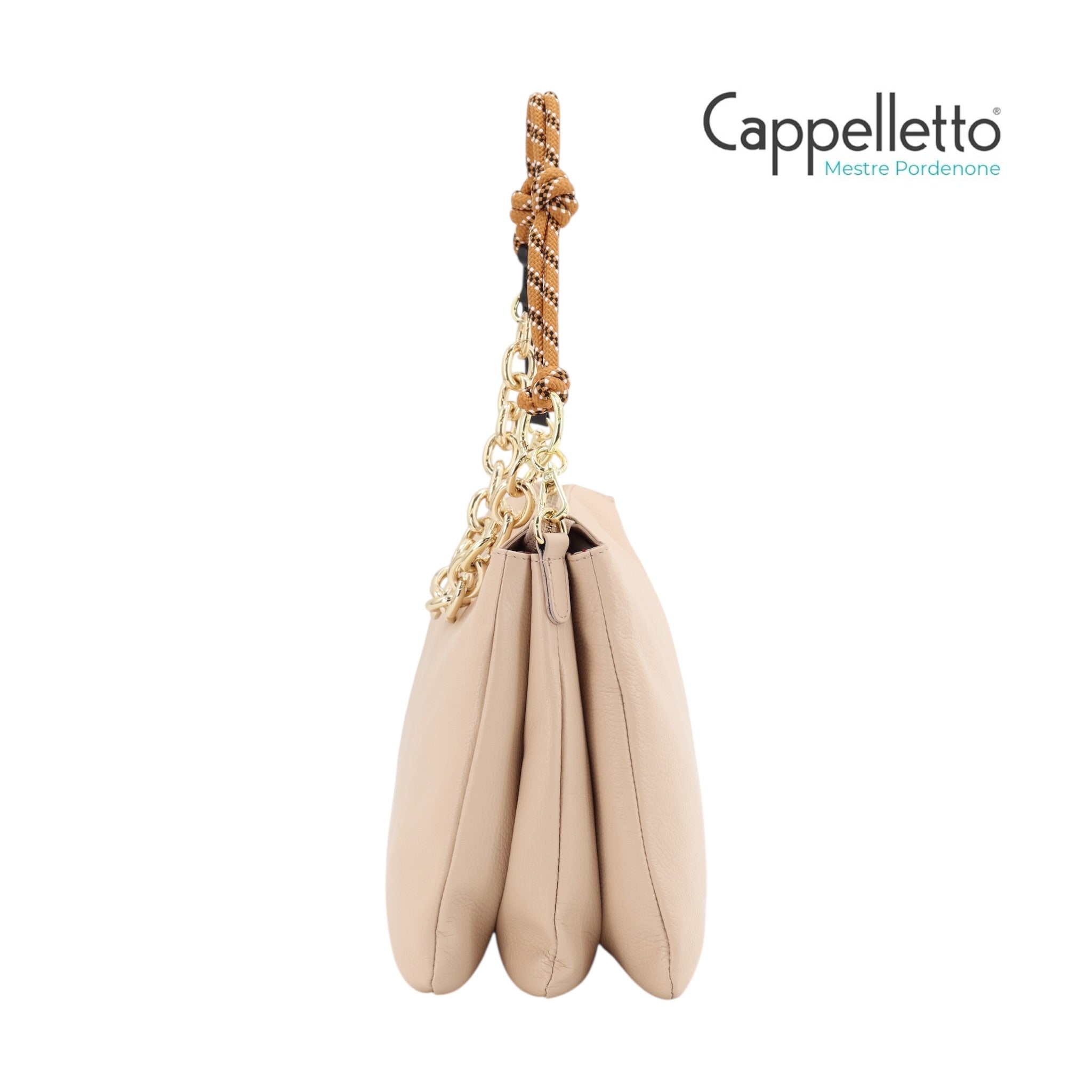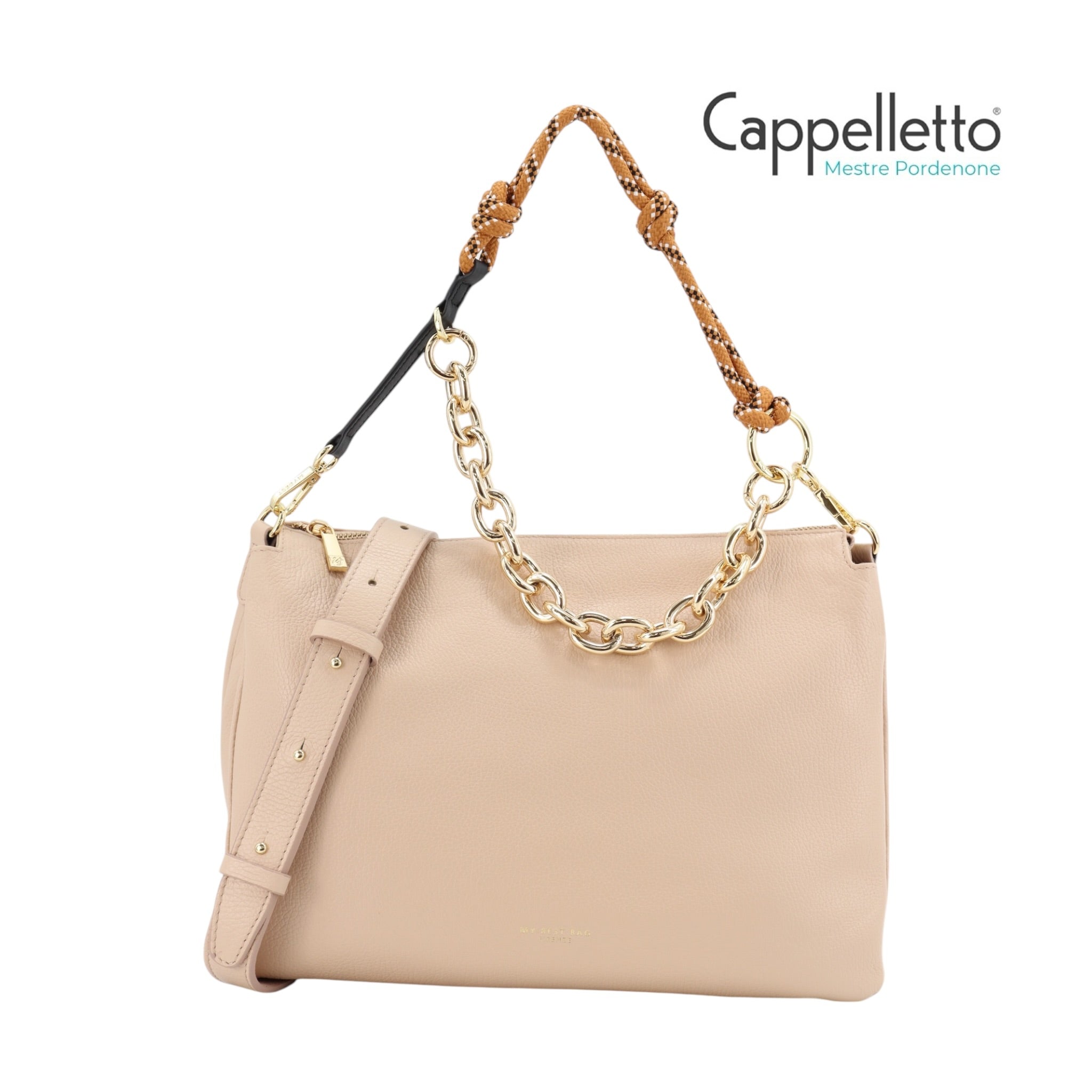 Doppia Portabilità: La borsa è dotata di un manico a catena o in corda rimovibile per il porto a spalla e di una tracolla lunga in pelle regolabile per l'uso crossbody.
