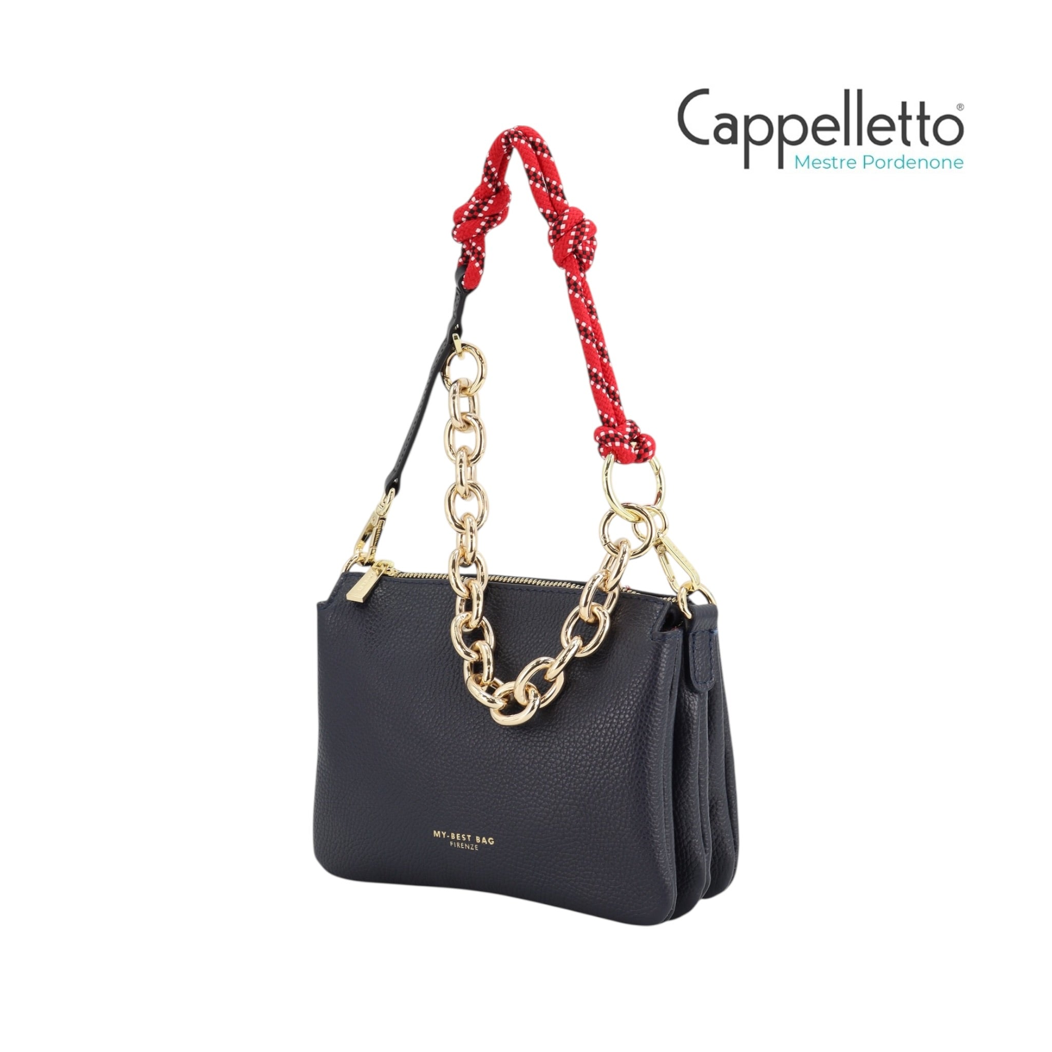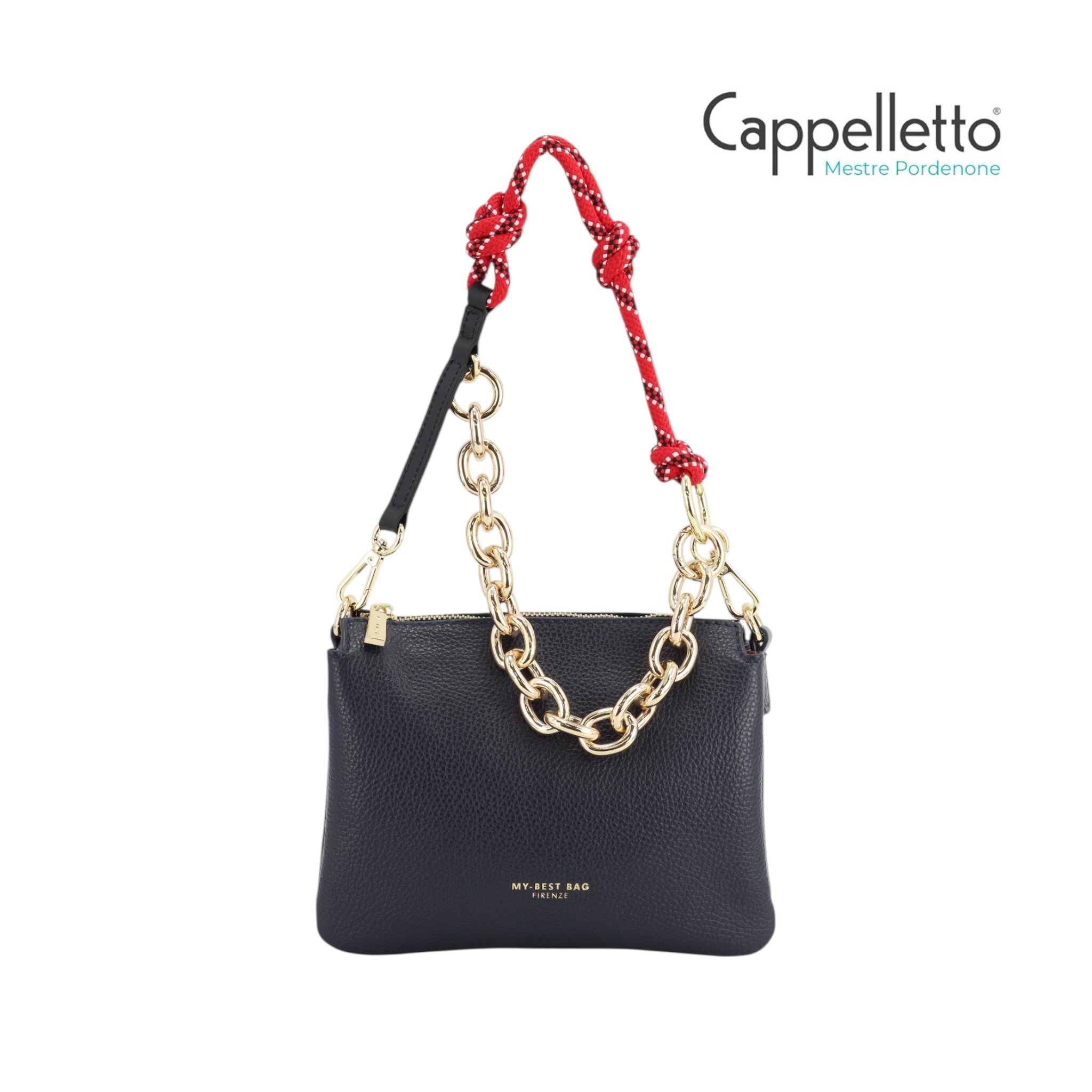 Doppia Portabilità: La borsa è dotata di un manico a catena o in corda rimovibile per il porto a spalla e di una tracolla lunga in pelle regolabile per l'uso crossbody.