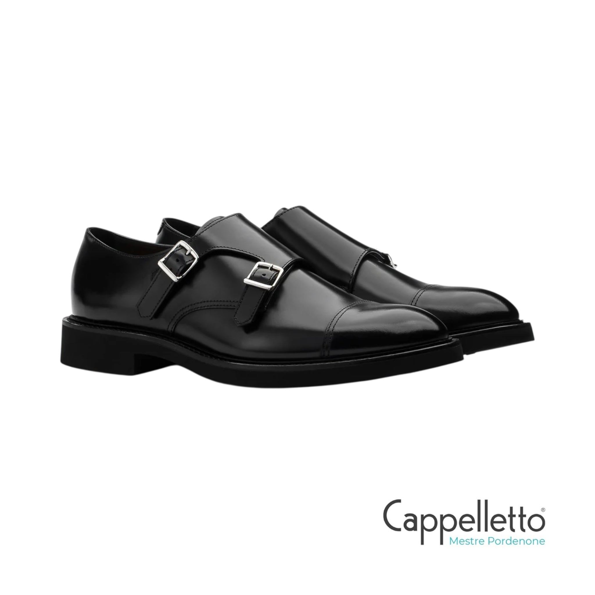 Doppia fibbia in pelle nera. Stile moderno con dettaglio cuciture tono su tono, connubio perfetto di artigianalità ed eleganza. Lavorazione Ago con suola in gomma XL.