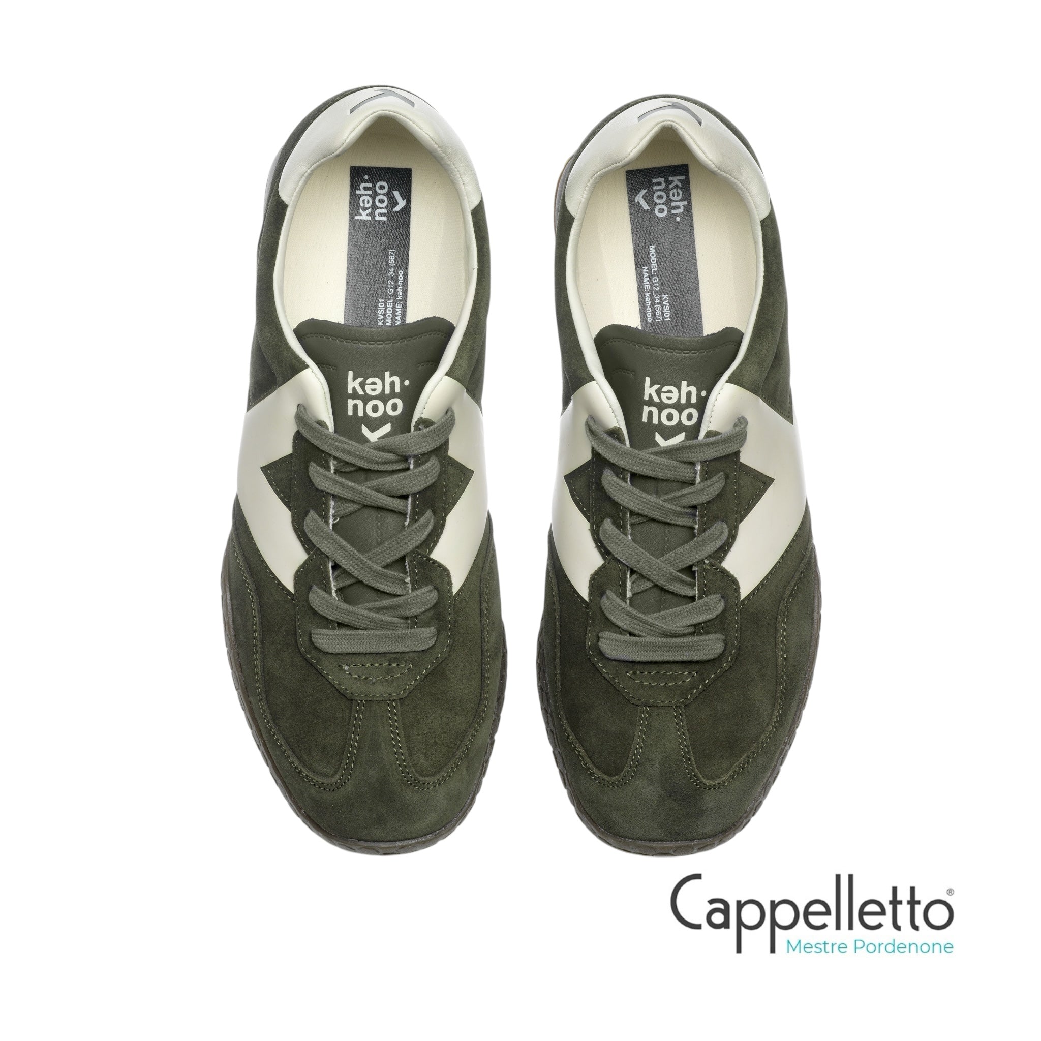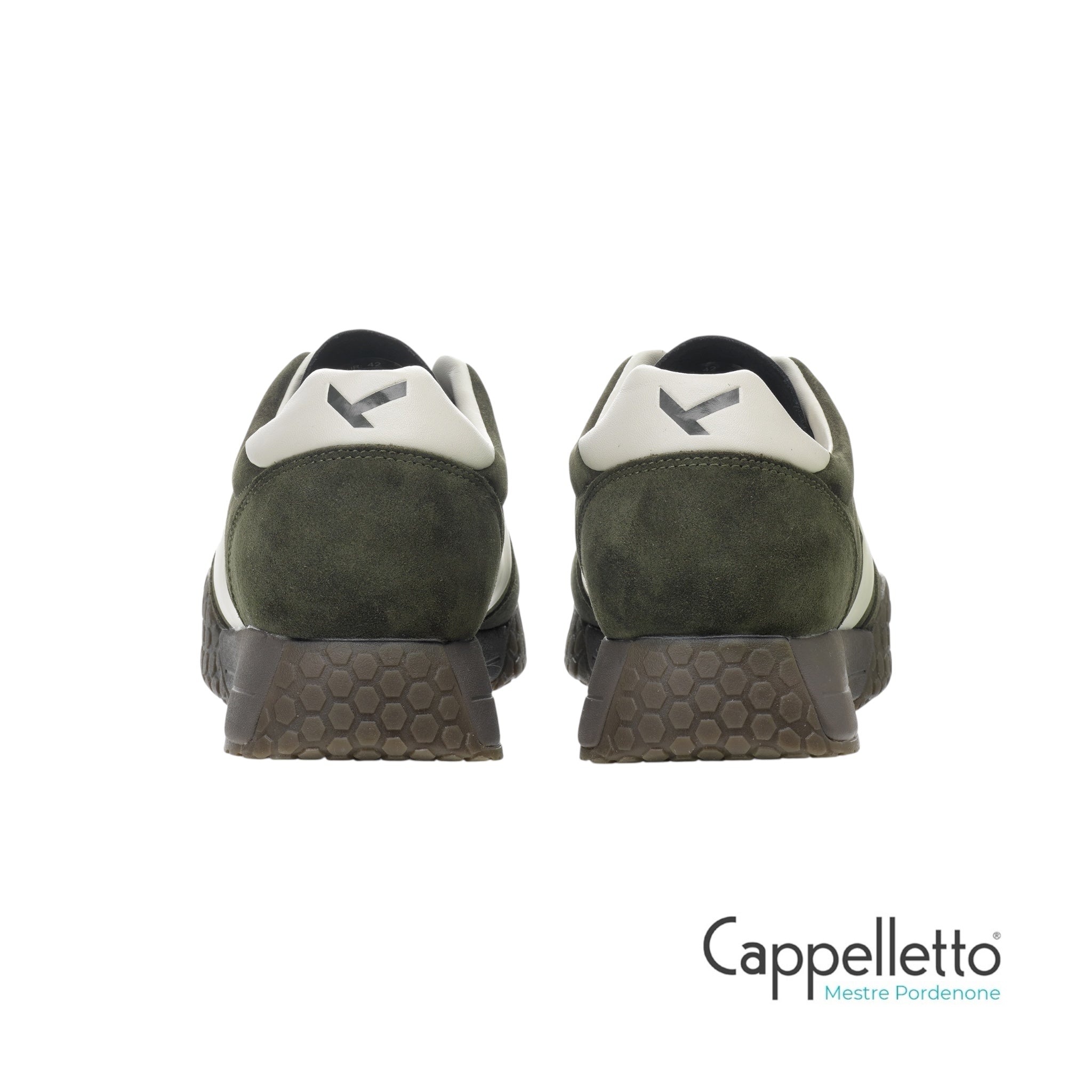 Sneaker vintage contemporanea. Tomaia in pelle scamosciata bovina, con linguetta termoformata in pelle. Lacci in cotone. Nuova suola in gomma con zeppa, con intersuola in EVA ammortizzata. Fodera in tessuto spugna ed ecopelle. Soletta interna rimovibile in schiuma super morbida, foderata in mesh.