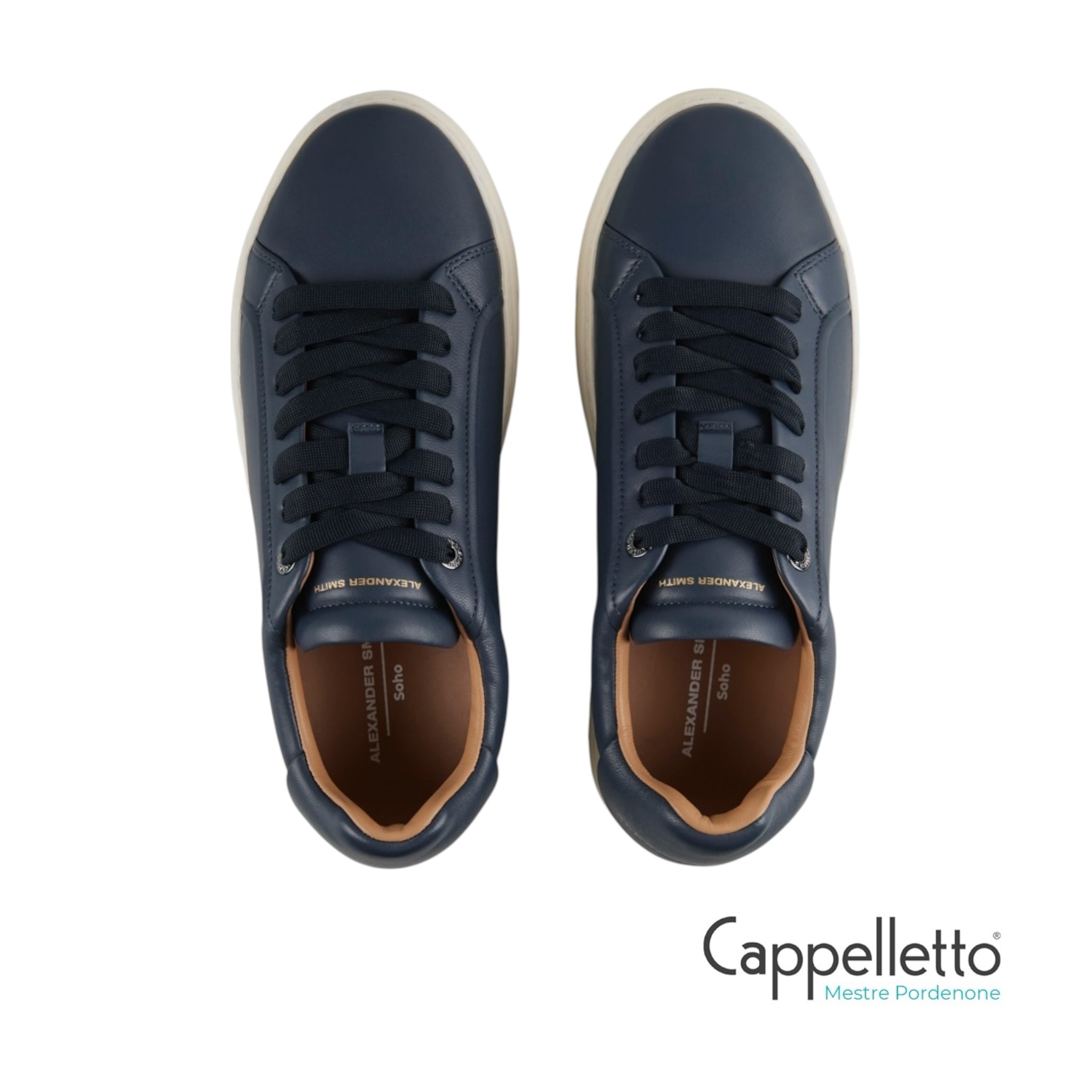 Il design moderno e sofisticato rende le SOHO il compagno perfetto per completare qualsiasi outfit, dal casual chic al formale raffinato, in questa variante in pelle liscia blu.