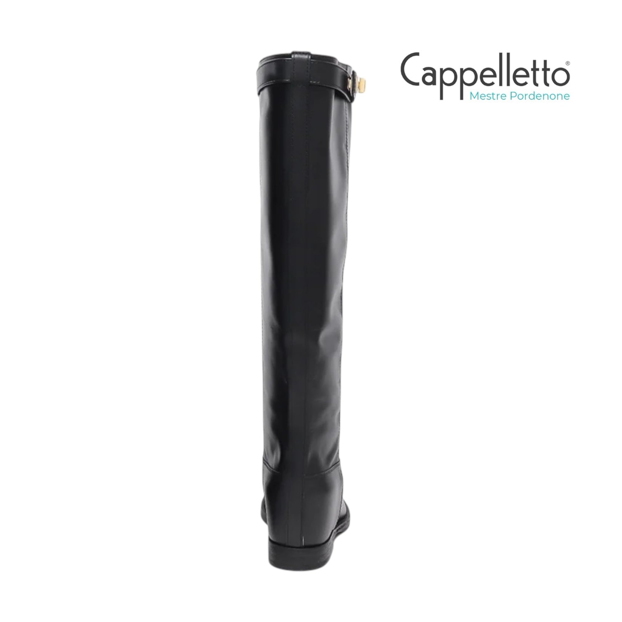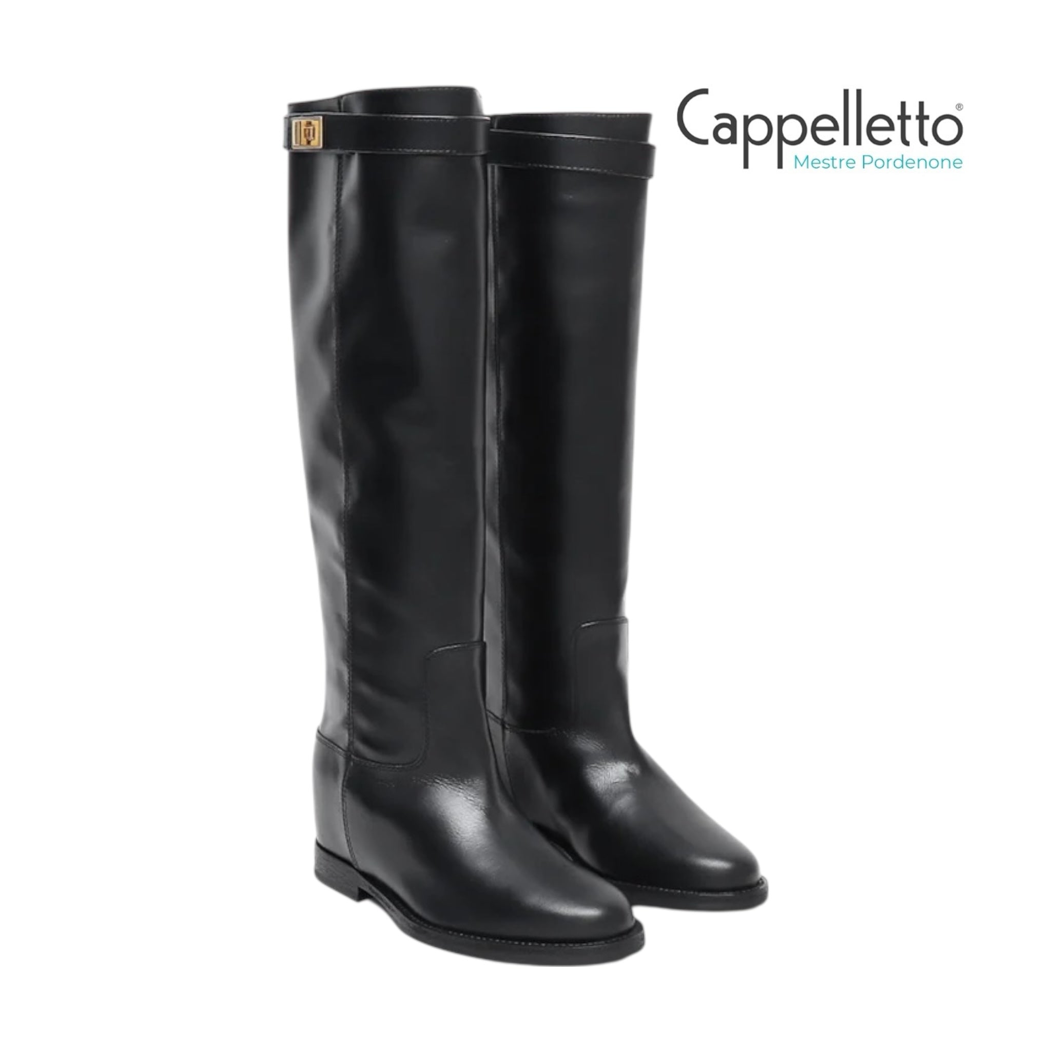 Zeppa interna di 4cm. Fodera in pelle. Suola in cuoio con pianta in gomma applicata.