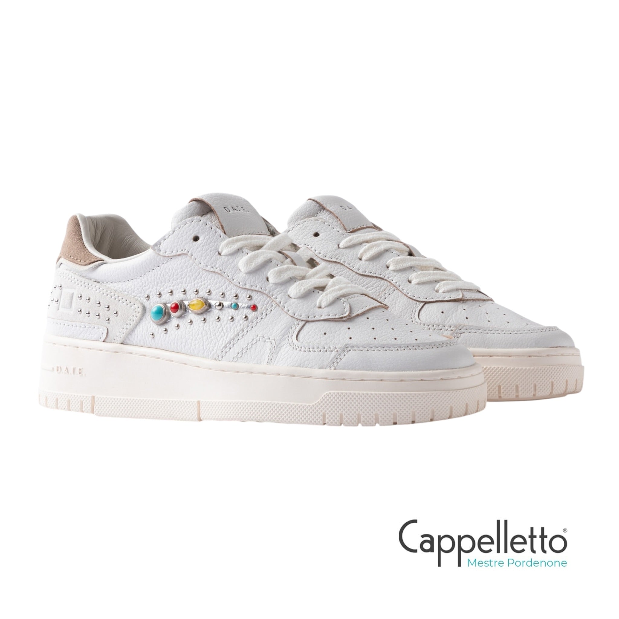 Sulla linguetta è cucita la label in pelle martellata con logo D.A.T.E. impresso.