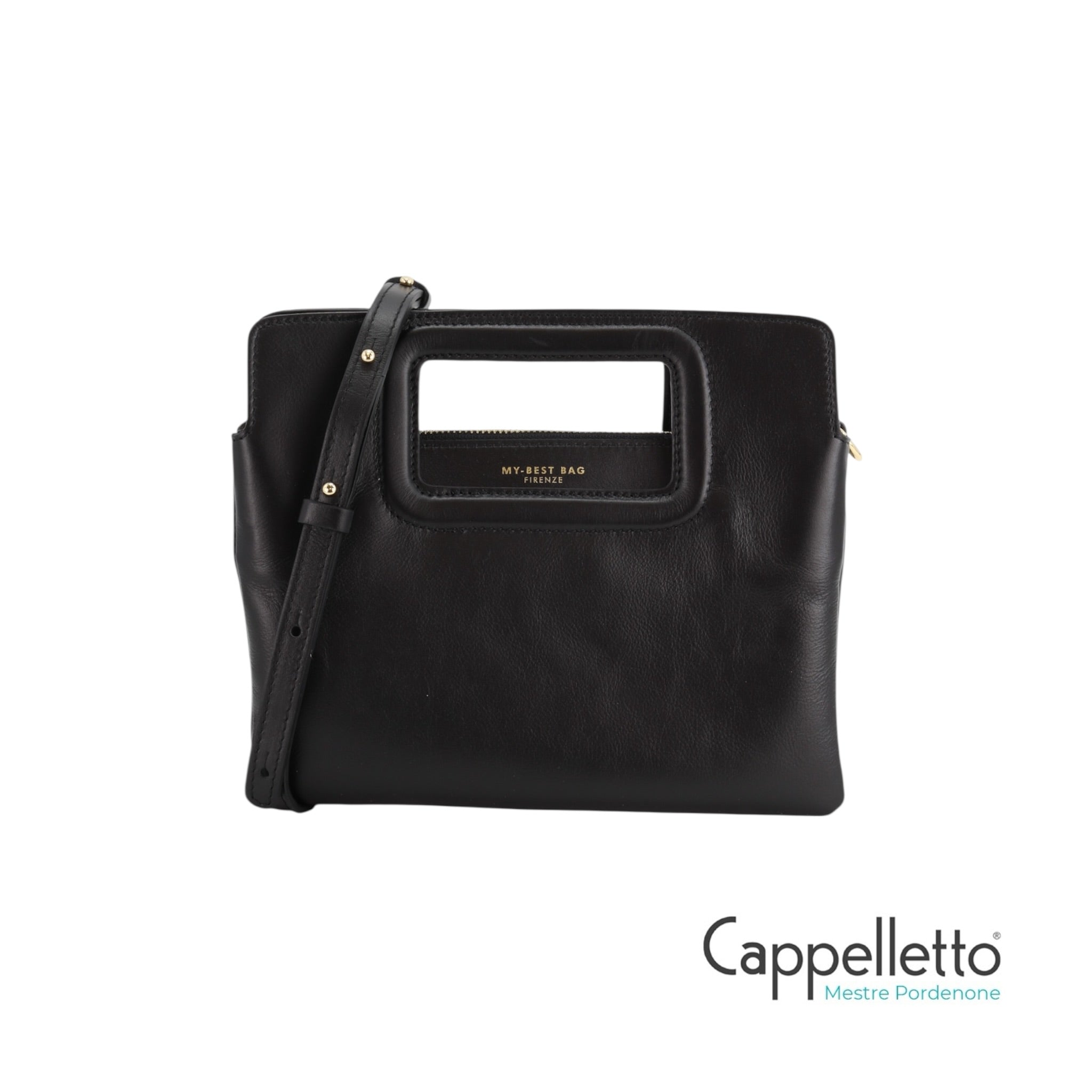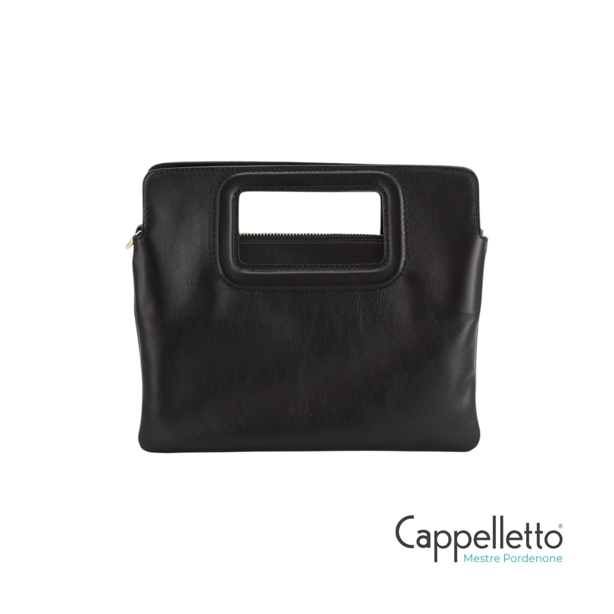 Il modello si distingue per una chiusura particolare con tracolla in pelle coordinata.